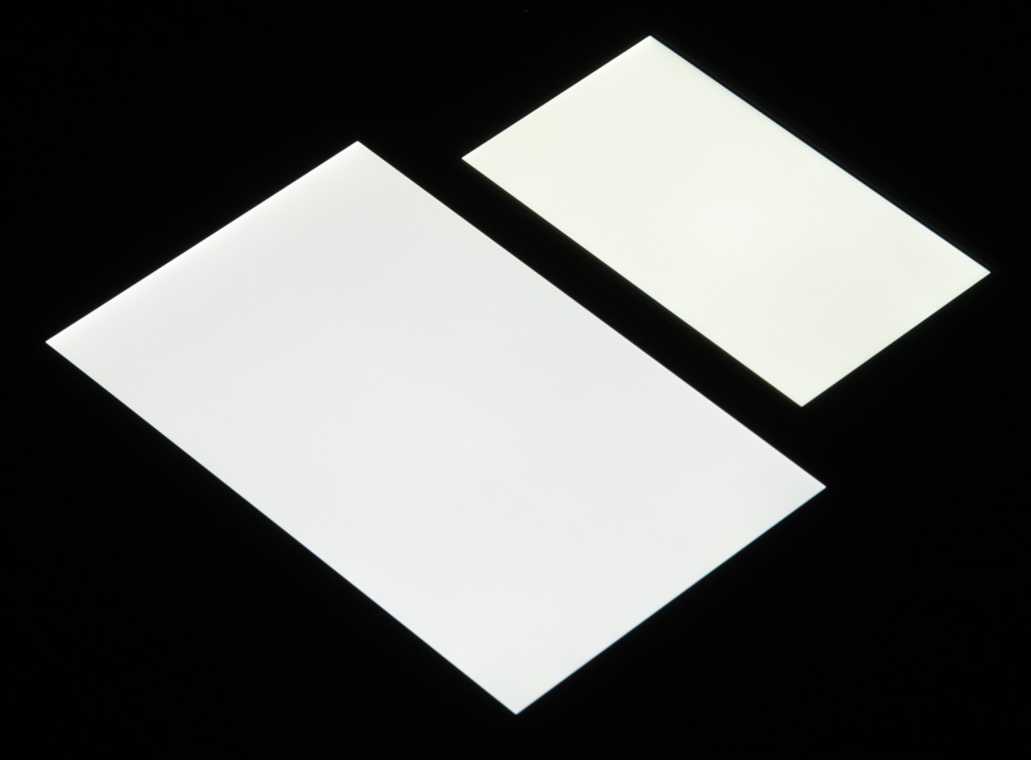 Цветопередача хорошая и цвета насыщенные у обоих экранов, цветовой баланс различается незначительно. Теперь под углом примерно 45 градусов к плоскости и к стороне экрана: