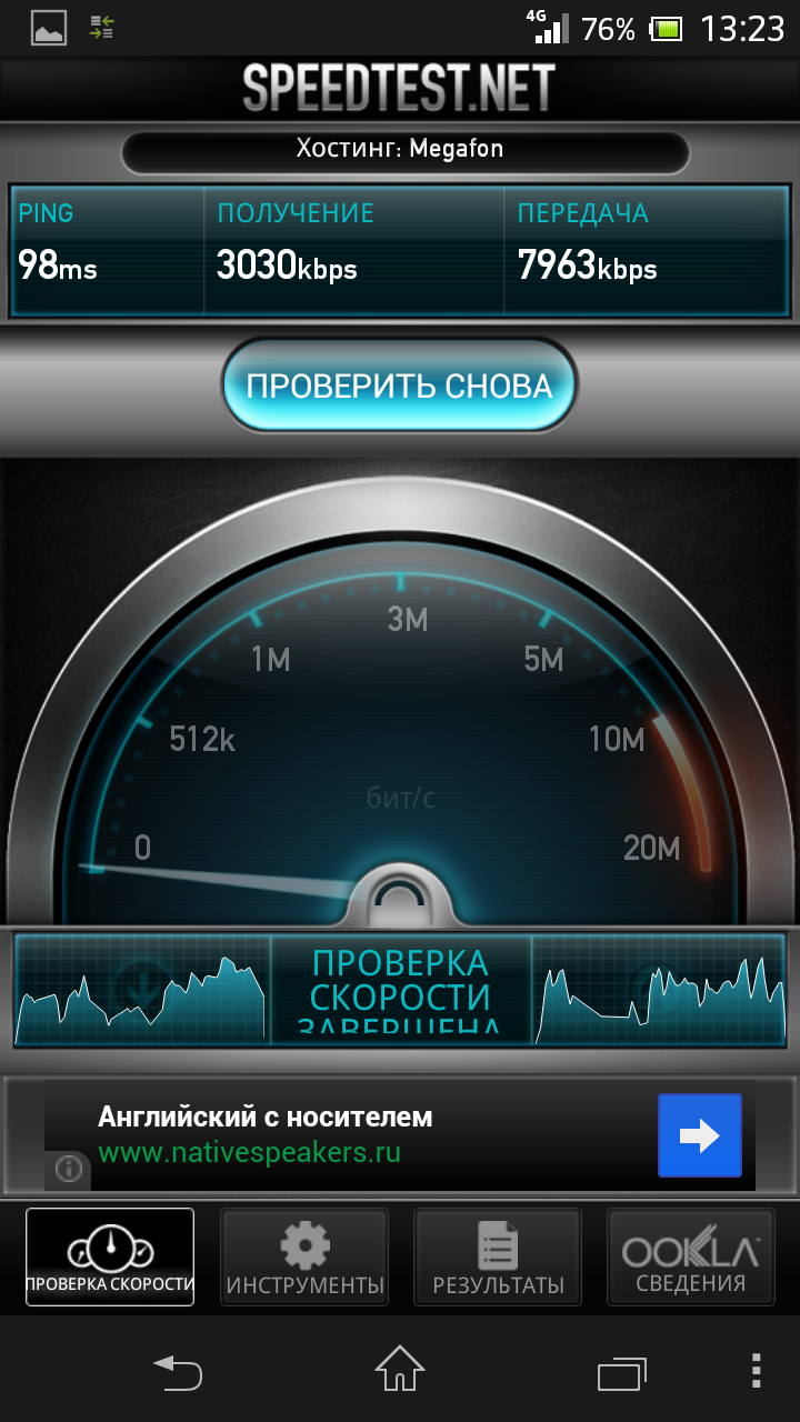 Sony Xperia SP не только работает в современных сетях 2G GSM и 3G WCDMA, но и имеет поддержку сетей четвертого поколения (LTE) в диапазонах 1, 3, 5, 7, 8, 20. Традиционно эта характеристика отмечена как «Эта функция доступна не во всех регионах». Для отечественного пользователя интерес представляет диапазон 7, на котором работают операторы Yota и Мегафон. Таким образом, Sony Xperia SP — один из немногих аппаратов, официально поддерживающих российские сети 4G, что может являться существенным конкурентным преимуществом для некоторых категорий пользователей. С другой стороны, надо понимать, что одной совместимости мало. Реальный эффект увеличения скорости доступа к данным зависит от множества внешних факторов, включая качество приема, загруженность соты и каналов оператора. Однако нельзя не отметить, что за прошедшие со времени первого тестирования месяцы ситуация все-таки улучшилась: появляются новые устройства, улучшается покрытие, а скорость и качество остаются на высоком уровне.