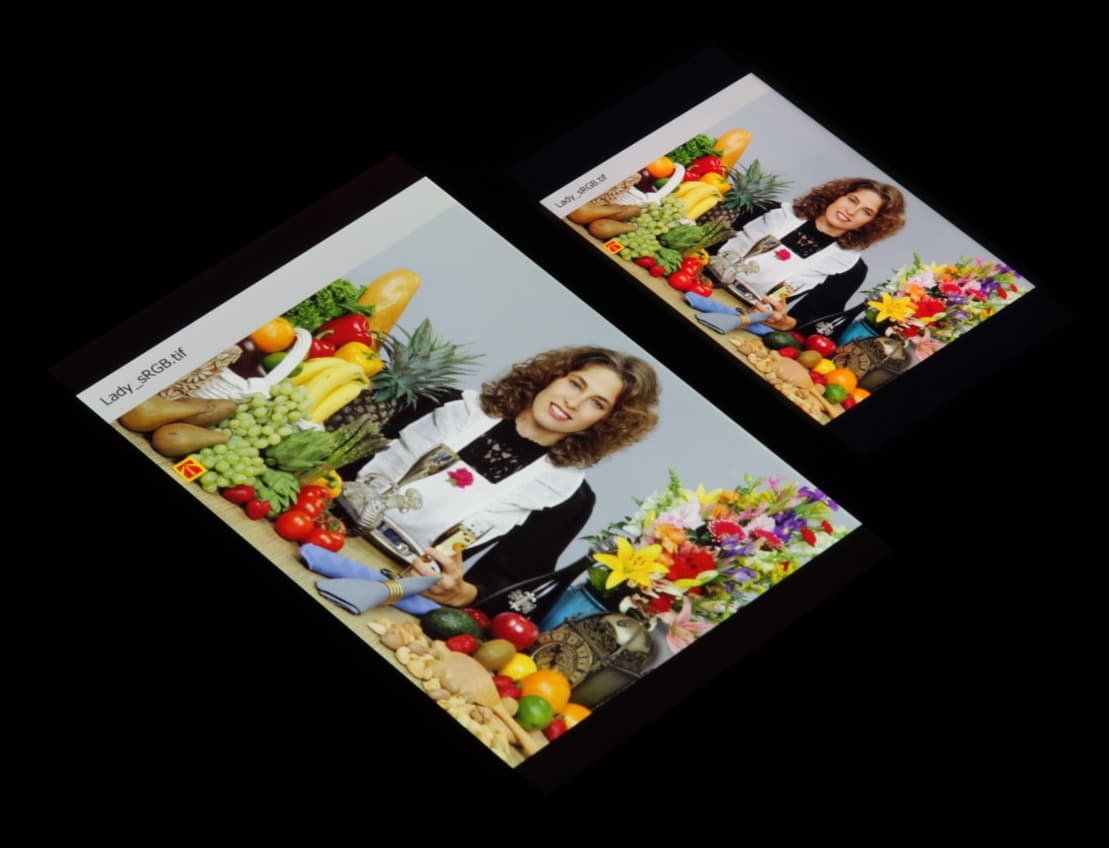 Они очень нетипичные для топовых мобильных устройств Sony. По всей видимости, в этом экране используются светодиоды с синим излучателем и зеленым и красным люминофором (обычно — синий излучатель и желтый люминофор), что в сочетании со специальными светофильтрами матрицы и позволяет получить широкий цветовой охват. Да, и в красном люминофоре, видимо, используются так называемые квантовые точки. К сожалению, в итоге цвета изображений — рисунков, фотографий и фильмов, — ориентированных на пространство sRGB (а таких подавляющее большинство), имеют неестественную насыщенность. Особенно это заметно на узнаваемых оттенках, например на оттенках кожи. Результат приведен на фотографии выше.