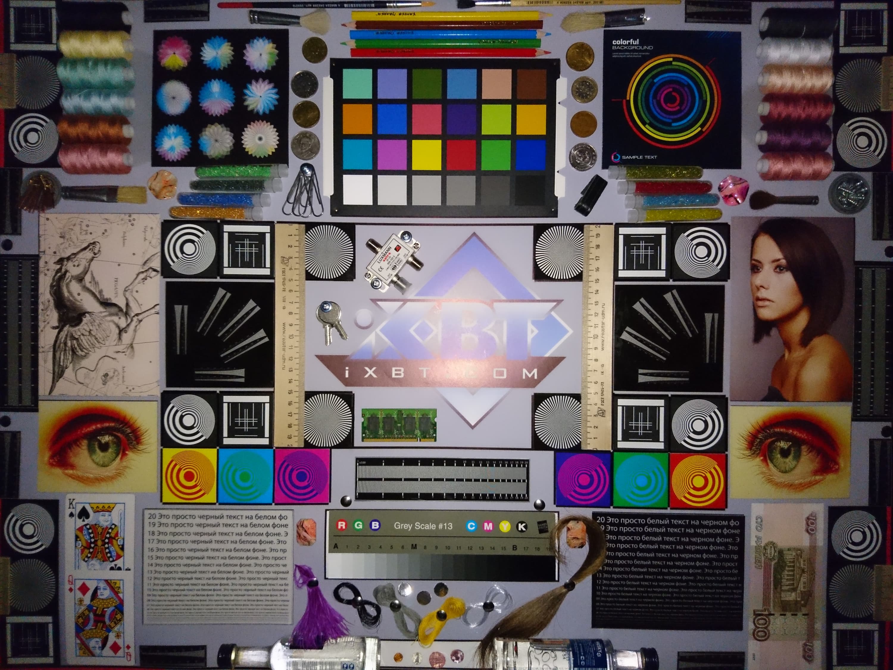 Отметим хорошую равномерность яркости и цветового тона белого поля. И тестовая картинка: