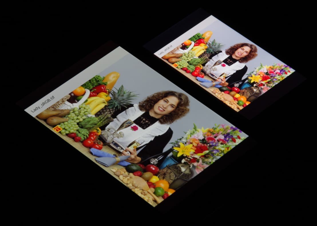 Они очень нетипичные для топовых мобильных устройств Sony. По всей видимости, в этом экране используются светодиоды с синим излучателем и зеленым и красным люминофором (обычно — синий излучатель и желтый люминофор), что в сочетании со специальными светофильтрами матрицы и позволяет получить широкий цветовой охват. Да, и в красном люминофоре, видимо, используются так называемые квантовые точки. К сожалению, в итоге цвета изображений — рисунков, фотографий и фильмов, — ориентированных на пространство sRGB (а таких подавляющее большинство), имеют неестественную насыщенность. Особенно это заметно на узнаваемых оттенках, например на оттенках кожи. Результат приведен на фотографии выше.