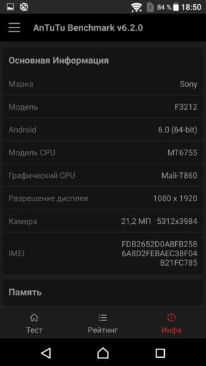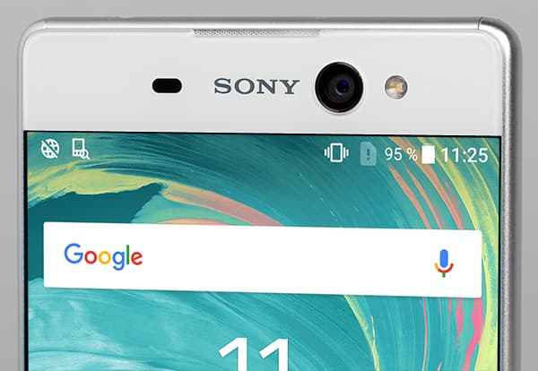 Смартфон оснащен очень крупным сенсорным экраном IPS с выпуклым 2.5D-стеклом с покатыми краями. Физические размеры дисплея составляют 75×133 мм, диагональ — 6 дюймов. Разрешение равняется 1920×1080, так что плотность точек достигает 367 ppi. Рамка толщиной в 2 мм по бокам вокруг экрана при таких огромных габаритах смартфона, можно сказать, визуально отсутствует вовсе. Порой это вызывает некоторые неудобства, связанные с неожиданными касаниями краев дисплея при захвате пальцами. Случается это не так часто, но у более мелкой по размерам Xperia ХА такого не было вовсе. То есть тут многое зависит от габаритов устройства и от того, как сильно пальцы загибаются, обхватывая боковины. В данном случае все совпало так, что экран чаще попадает под пальцы, чем у Xperia ХА с менее крупным корпусом.