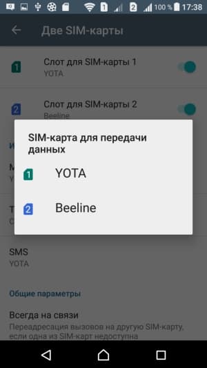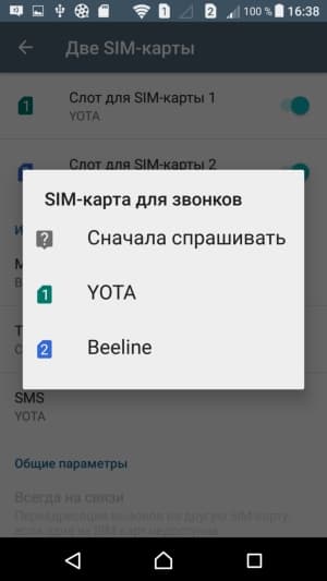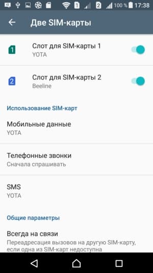Смартфон обеспечивает работу с двумя SIM-картами по стандарту Dual SIM Dual Standby. Радиомодуль здесь один, поэтому активный разговор может быть только один. С сетями 3G/4G может работать SIM-карта в любом слоте, однако одновременно в этом режиме может работать лишь одна из карт (вторая будет работать только в 2G). Выбор между двумя SIM-картами для осуществления вызова, отправки SMS и пр. можно осуществить заранее или непосредственно перед выполнением действия.