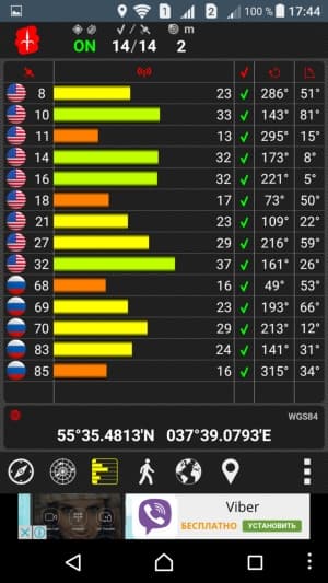 Навигационный модуль работает с GPS (А-GPS) и Глонасс без поддержки китайской Beidou. К скорости работы навигационного модуля претензий нет, первые спутники обнаруживаются при холодном старте в течение первых секунд. Смартфон оборудован сенсором магнитного поля, на основе которого функционирует компас навигационных программ.