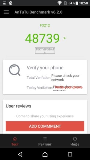 Смартфон функционирует в большинстве диапазонов сетей 2G GSM, 3G WCDMA, а также имеет поддержку LTE Cat.4 с теоретической максимальной скоростью до 150 Мбит/с на скачивание. Поддерживаются все три наиболее распространенных у отечественных операторов диапазона LTE FDD (B3, B7 и B20). Скорость соединения в сетях 4G и работа с сотовыми сетями российских операторов в целом у всех новых аппаратов Sony Xperia Х и XA не вызывают никаких претензий: смартфон мгновенно производит повторное соединение после разрыва, не теряет связь в зонах неуверенного приема, выдает максимально высокие скорости в 4G в знакомых проверочных местах.