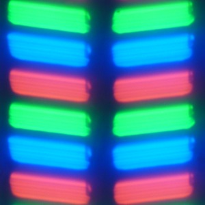 В данном экране используется матрица типа IPS. Микрофотографии демонстрируют типичную для IPS структуру субпикселей: