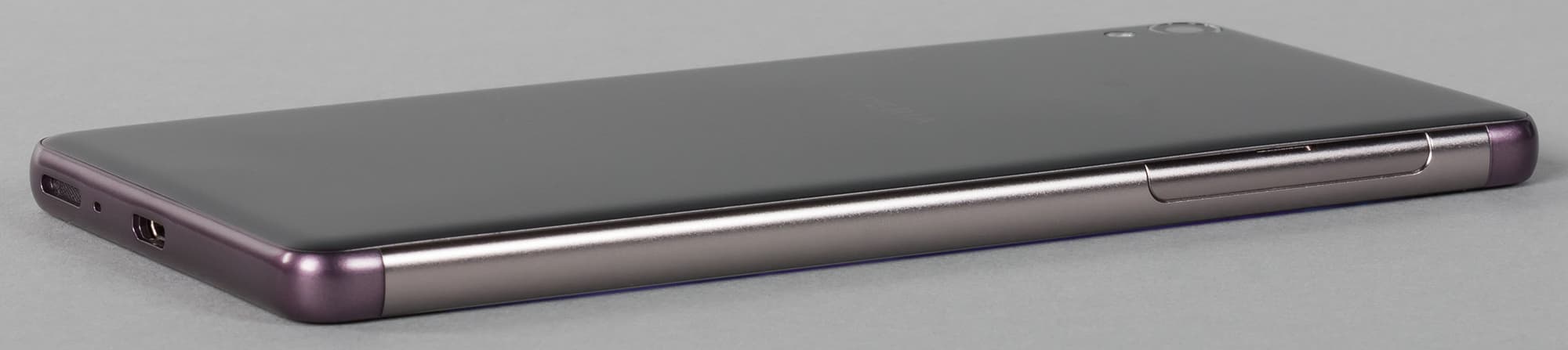 В плане распределения элементов на корпусе у Xperia XA все привычно. Карточки вставляются в боковой разъем слева, и здесь можно выделить второе (после «безрамочного» дисплея, которого лишена старшая модель) положительное отличие Xperia XA от Xperia X. Дело в том, что у него под крышкой расположены два слота для карт, а не один гибридный, как в Xperia X. То есть в Xperia XA можно одновременно вставить две SIM-карты и еще карту памяти microSD, и для этого не придется извлекать одну из SIM-карт, что не может не радовать.