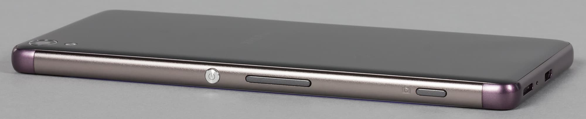 Механические кнопки разместились на противоположной, правой боковой грани корпуса. В отличие от старших моделей, здесь нет вписанного в кнопку питания сканера отпечатков пальцев. Да и сама кнопка по форме другая: она не вытянутая, а круглая, как в прошлых моделях Xperia Z еще до появления в них дактилоскопических датчиков.