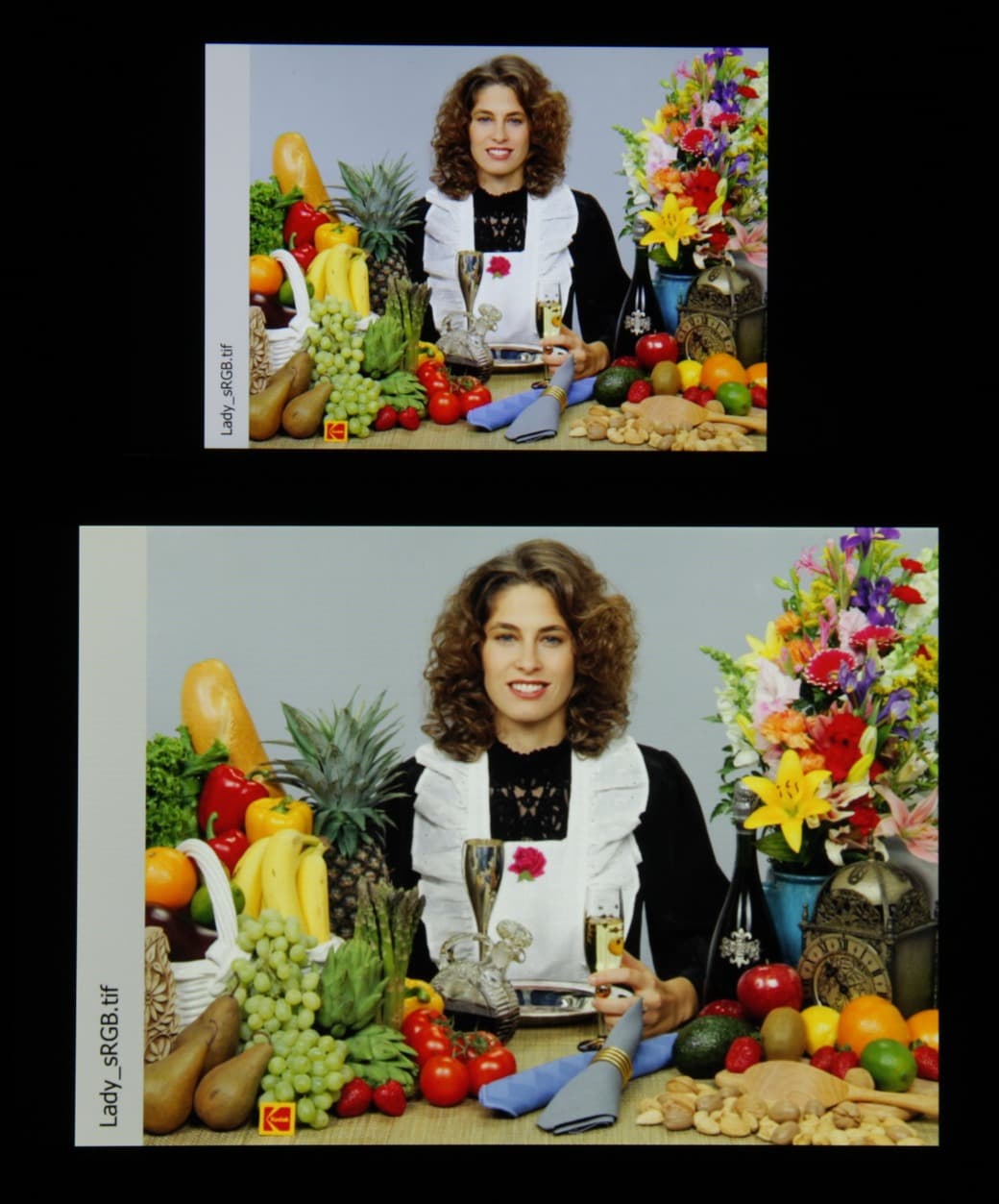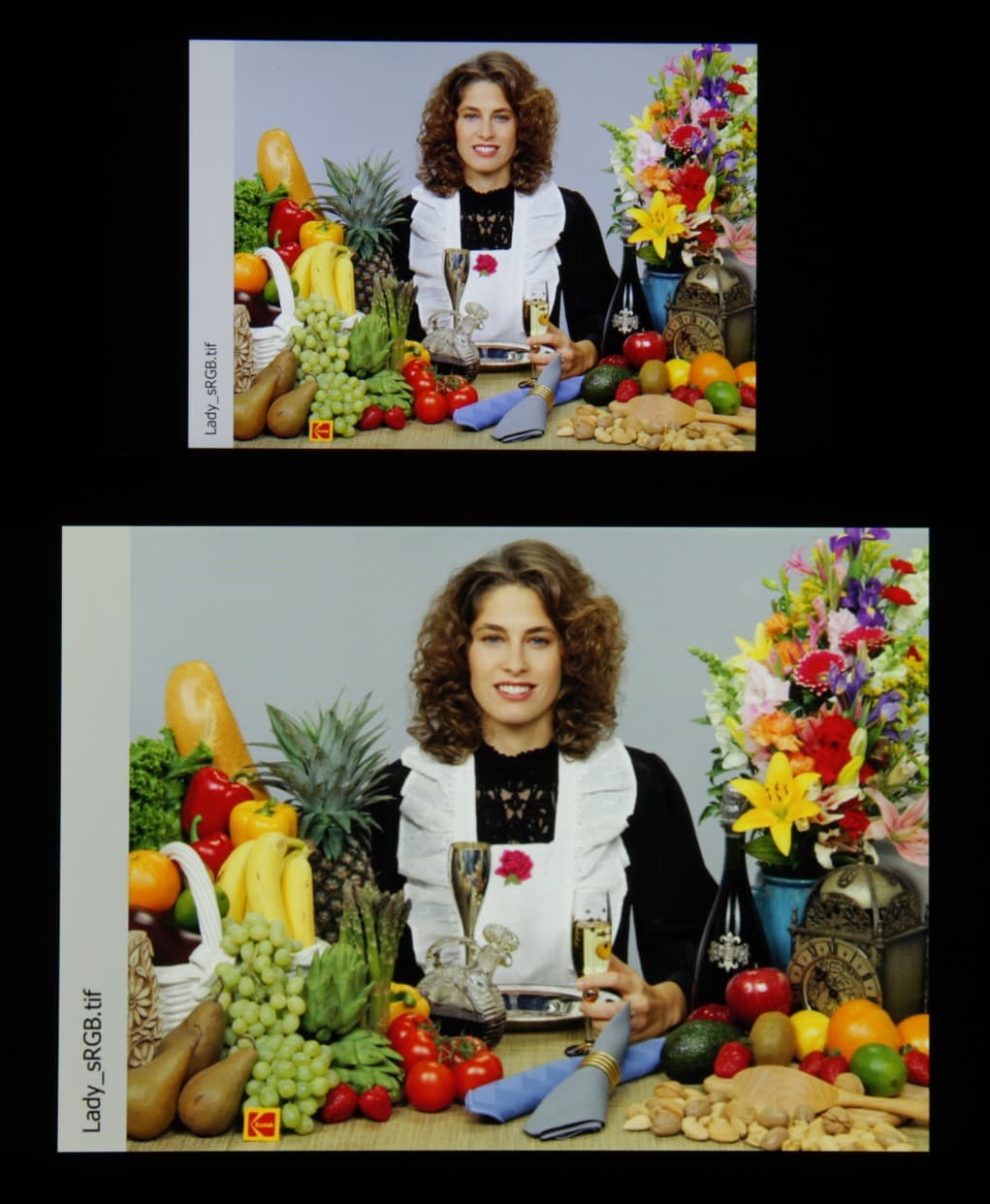 Отметим хорошую равномерность яркости и цветового тона белого поля. И тестовая картинка: