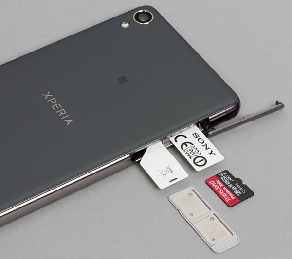 Под SIM-карты имеется два равнозначных отсека для карт формата Nano-SIM. Горячая замена не предусмотрена: смартфоны Sony всегда самостоятельно перезагружаются, как только открывается крышка соответствующих слотов. Приятный момент состоит в том, что в смартфонах японцев поддон для SIM-карт не нужно выдавливать с помощью скрепки, он легко вынимается после подцепления ногтем.