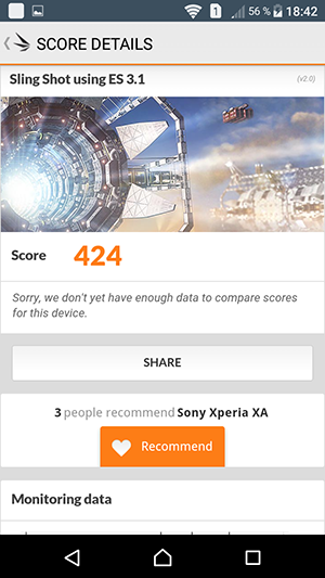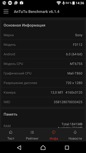 Яркость дисплея имеет автоматическую регулировку на основе датчика освещения. Есть и датчик приближения, который блокирует экран при поднесении смартфона к уху. Технология мультитач позволяет обрабатывать 10 одновременных прикосновений — правда, стандартный тест AnTuTu не смог адекватно справиться с данным экраном. Поддержки работы с экраном в перчатках, в отличие от Xperia X, у рассматриваемого смартфона нет. И уж конечно ушла в прошлое функция работы с мокрыми пальцами, поскольку новые смартфоны Sony не защищены от воды.