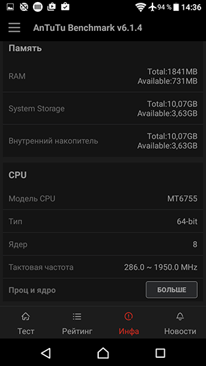 Судя по сравнительной таблице с тестовыми данными других актуальных мобильных платформ, можно констатировать, что новая SoC MediaTek MT6755 (Helio P10) заметно опережает по всем показателям чрезвычайно популярную у производителей в прошлом сезоне среднеуровневую MT6753, и даже некогда флагманская MediaTek MT6795 уже оказывается ни в чем не лучше нашей героини. То есть сегодняшний средний уровень мобильных платформ по своим возможностям оказывается лучше топового уровня прошлого года, что не может не радовать.