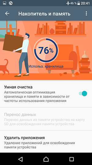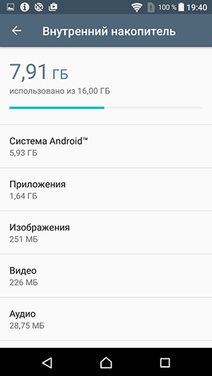 Объем оперативной памяти смартфона составляет 2 ГБ, объем встроенной флэш-памяти — 16 ГБ, из которых изначально доступны пользователю для его нужд около 11 ГБ. Этот объем можно увеличить за счет карт microSD, и в отличие от старших моделей серии Х, здесь ради этого не придется вынимать одну из SIM-карт, все три карты устанавливаются в аппарат одновременно. Также есть возможность подключать к порту USB внешние флэш-накопители в режиме OTG. Карты microSD поддерживаются емкостью до 200 ГБ, на практике наша проверочная карта Transcend Premium microSDXC UHS-1 объемом 128 ГБ уверенно распозналась устройством.