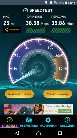 Sony Xperia XA функционирует в большинстве диапазонов сетей 2G GSM, 3G WCDMA, а также имеет поддержку LTE Cat.4 с теоретической максимальной скоростью до 150 Мбит/с на скачивание. Смартфон поддерживает все три наиболее распространенных у отечественных операторов диапазона LTE FDD (B3, B7 и B20). Скорость соединения в сетях 4G и работа с сотовыми сетями российских операторов в целом у Sony Xperia XA не вызывают никаких претензий: смартфон мгновенно производит повторное соединение после разрыва, не теряет связь в зонах неуверенного приема, выдает максимально высокие скорости в 4G в проверочных местах, где конкуренты демонстрируют гораздо худшие результаты. В плане коммуникационных возможностей у смартфонов Sony всегда все на высоте, это одно из их преимуществ.