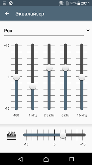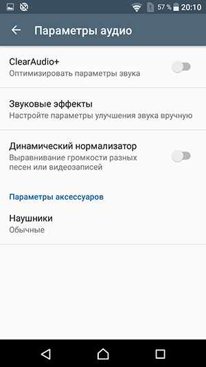 Звучит Xperia XA менее интересно, чем Xperia X, звук основного динамика здесь довольно простенький. Для сигнала вызова этого высокого пронзительного однотонного высокочастотного звука вполне хватает, но для прослушивания мелодий не достает ни ширины спектра частот, ни глубины и яркости звучания, ни, в общем-то, даже запаса громкости. В наушниках звук безусловно интереснее, здесь в целом все довольно хорошо, но настроек меньше, чем у флагманов. Есть автоматическая оптимизация всех параметров звучания с помощью комплексной функции ClearAudio+, но если ее выключить, то из ручных настроек можно найти лишь эквалайзер с предустановленными значениями да эмуляцию объемного звука, которой вообще мало кто пользуется.