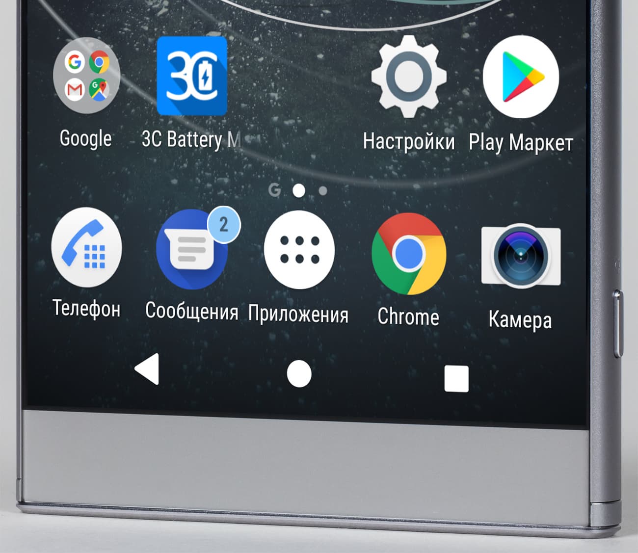 В нижней части под экраном нет аппаратных кнопок, кнопки здесь только экранные. Их панель нельзя убирать и вызывать обратно взмахом, она почти всегда присутствует на экране, хотя в некоторых приложениях и играх все же пропадает.
