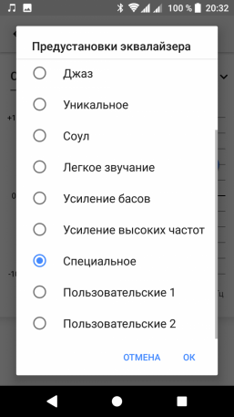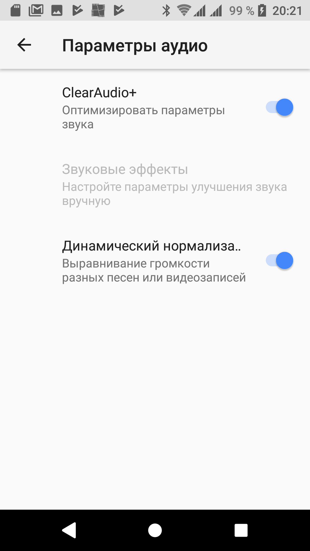 Для проигрывания музыки в аппарате используется привычный фирменный проигрыватель со знакомым набором настроек для оптимизации звука ClearAudio+. Звук основного динамика блеклый и не очень громкий. В наушниках же аппарат звучит более-менее достойно: звук чистый, громкий и насыщенный, хотя низких частот не в избытке, но набор настроек столь широк, что можно все подстроить под свой вкус. Поддерживаются профили Bluetooth 5.0 aptX/aptX HD audio/A2DPЕ. Есть встроенное FM-радио, а вот приложения диктофона в смартфонах Sony не бывает.