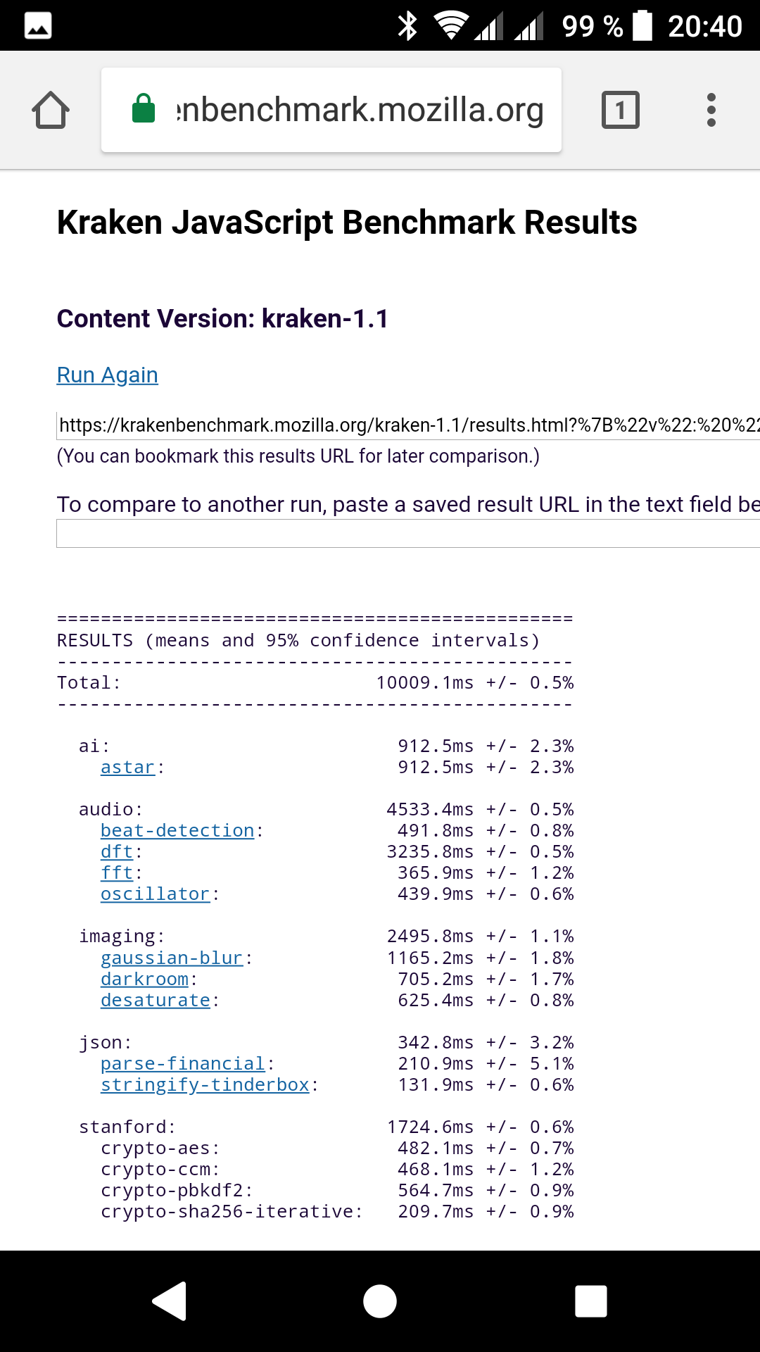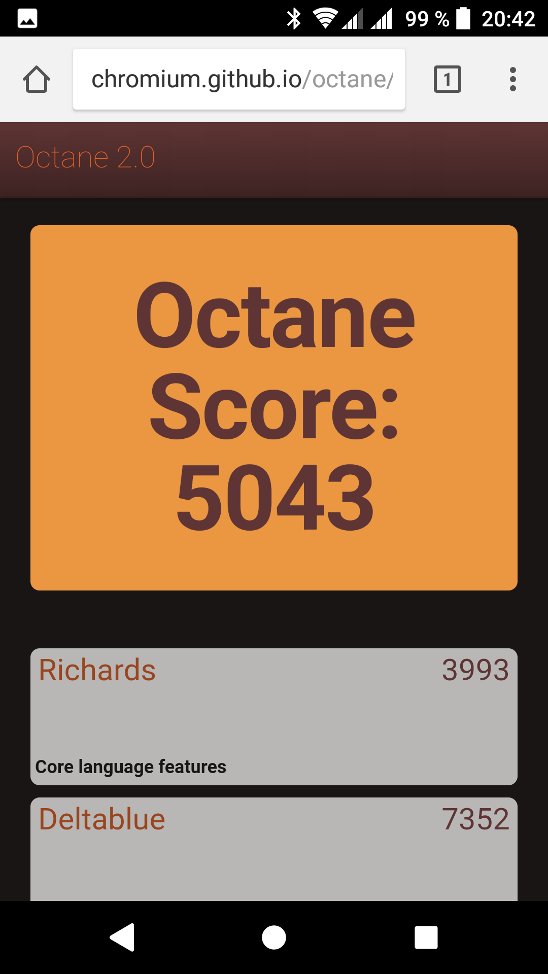 Что касается бенчмарков для оценки скорости движка javascript, то стоит всегда делать скидку на то, что в них результаты существенно зависят от браузера, в котором запускаются, так что сравнение может быть истинно корректным только на одинаковых ОС и браузерах, а такая возможность имеется при тестировании не всегда. В случае с ОС Android мы всегда стараемся использовать Google Chrome.