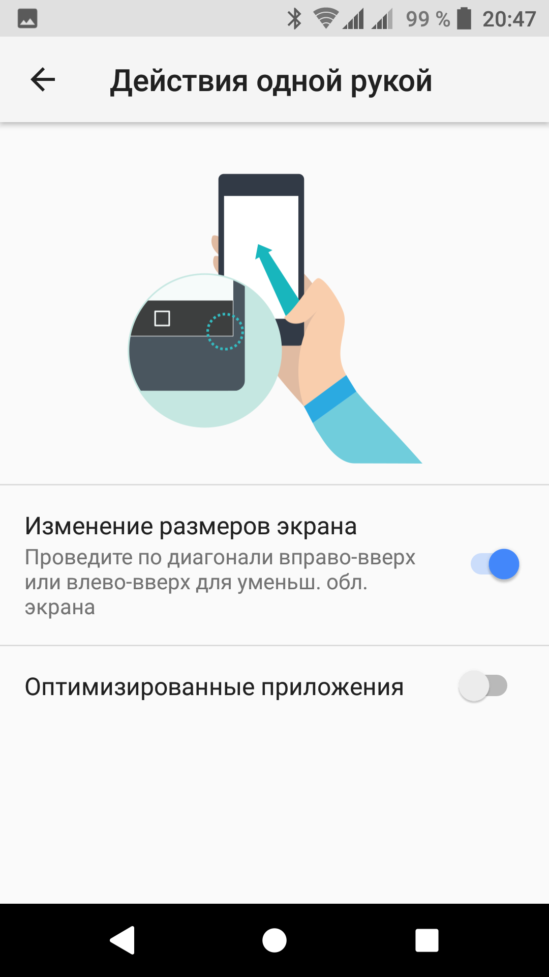 В качестве программной платформы Sony Xperia XA2 Ultra использует Google Android 8.0 с собственной оболочкой и возможностью обновления по воздуху. Здесь пользователи, знакомые с мобильной техникой Sony, не откроют для себя ничего нового: ни внешний вид, ни организация меню в японских смартфонах уже давно кардинально не менялись. Стоит отметить разве что удобную функцию для уменьшения рабочей площади экрана при работе одной рукой, ведь экран у этого смартфона очень большой.