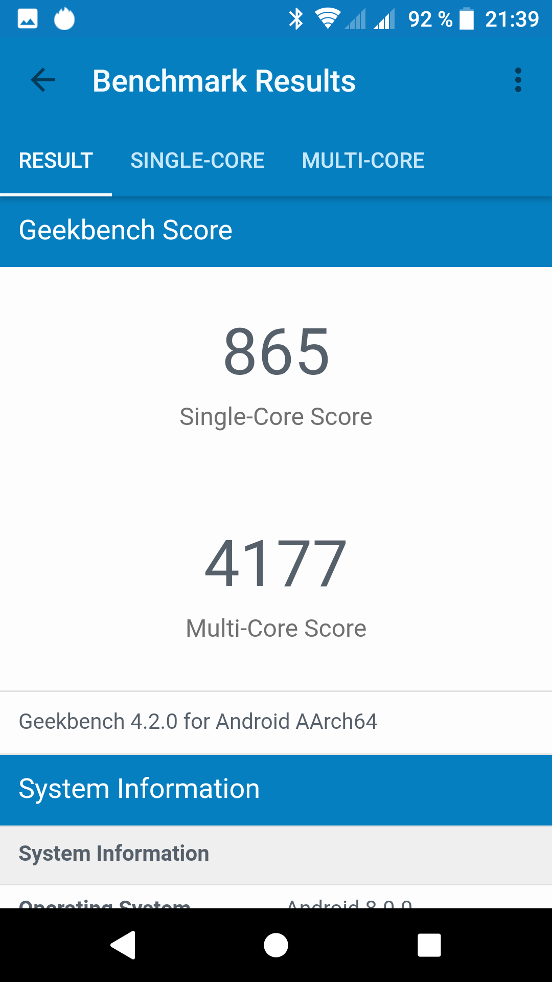 | GeekBench (v4.x) (больше — лучше) | 865/4177 | 930/3625 | 597/2033 | 621/2694 | 1415/5417 |