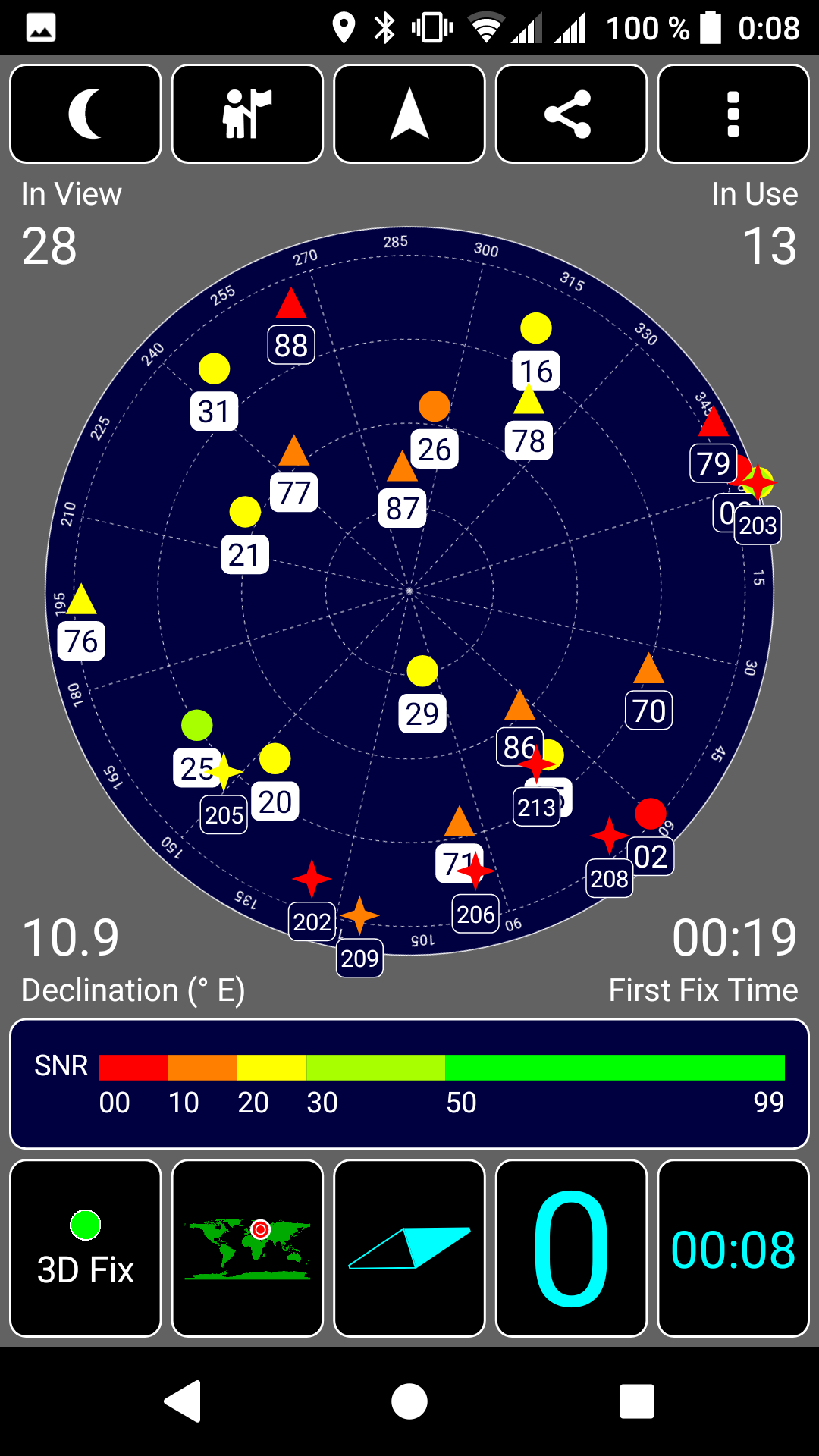 Навигационный модуль работает и с GPS (с A-GPS), и с отечественной Глонасс, и с поддержкой китайской Beidou. Первые спутники при холодном старте обнаруживаются быстро, в течение первых же секунд. Магнитный компас, необходимый для навигационных программ, в аппарате имеется.