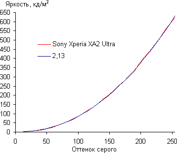 Контрастность (примерно в центре экрана) высокая — порядка 1500:1. Время отклика при переходе черный-белый-черный равно 34 мс (17 мс вкл. + 17 мс выкл.). Переход между полутонами серого 25% и 75% (по численному значению цвета) и обратно в сумме занимает 59 мс. Построенная по 32 точкам с равным интервалом по численному значению оттенка серого гамма-кривая не выявила завала ни в светах, ни в тенях, а показатель аппроксимирующей степенной функции получился 2,13, что немного меньше стандартного значения 2,2. При этом реальная гамма-кривая практически не отклоняется от степенной зависимости: