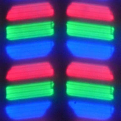 В данном экране используется матрица типа IPS. Микрофотографии демонстрируют типичную для IPS структуру субпикселей: