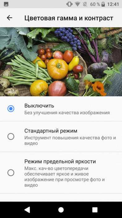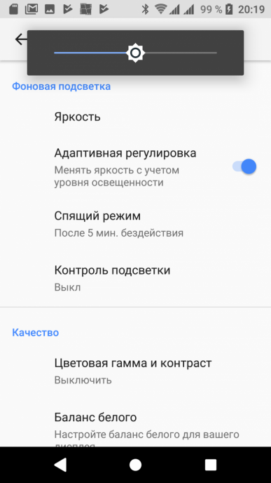 В этом смартфоне есть возможность подправить цветовой баланс регулировками интенсивностей трех основных цветов.