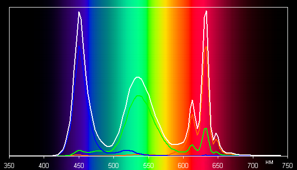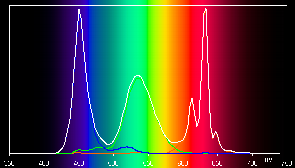 Спектры показывают, что такой охват является практически родным для экрана, так как перекрестное подмешивание компонент незначительное:
