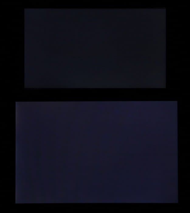 При перпендикулярном взгляде равномерность черного поля хорошая: