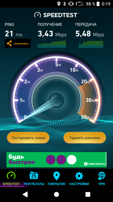 Адекватно ведет себя аппарат и в обоих диапазонах Wi-Fi (2,4 и 5 ГГц), к работе Wi-Fi-модуля претензий нет. Можно организовать беспроводную точку доступа через каналы Wi-Fi или Bluetooth — поддерживается Bluetooth версии 5.0. Наличие модуля NFC в смартфоне при общемировом развитии удобных технологий бесконтактной оплаты не может не радовать.