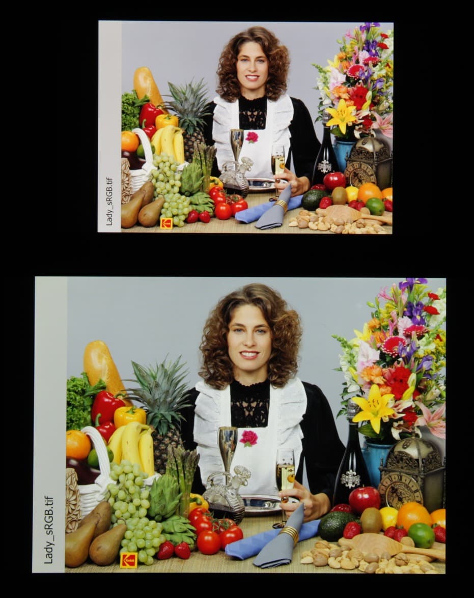 Видно, что в этом режиме цветовые компоненты подмешиваются друг к другу, что и позволяет уменьшить цветовой охват. Смотрим на тестовое изображение в этом режиме: