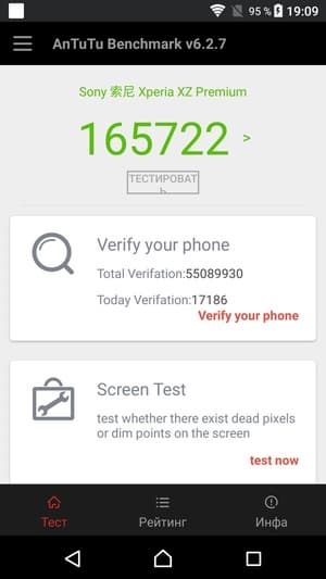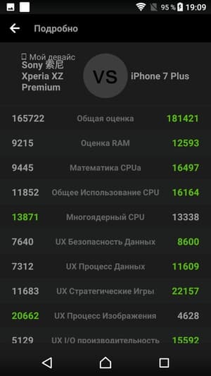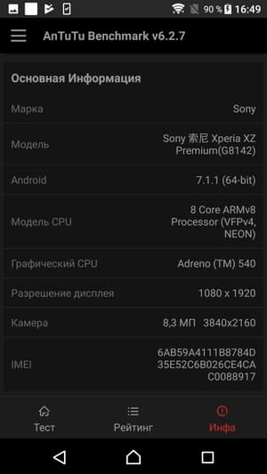 В любом случае данная SoC обеспечивает системе уверенное быстродействие и в реальных сценариях позволяет смартфону справляться со всеми без исключения задачами. Все проверенные нами игры, в том числе Modern Combat 5, Mortal Kombat X и другие, идут без малейших притормаживаний на максимальных настройках. Sony Xperia XZ Premium — это очень производительный аппарат, у которого имеется существенный «запас прочности» для будущих обновлений.