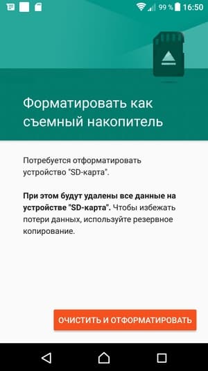 Есть возможность расширения памяти за счет установки карт microSD, также можно подключать внешние флэш-накопители в режиме USB OTG. Отформатировать карту памяти так, чтобы на нее можно было устанавливать приложения, не предлагается, она здесь используется лишь для хранения файлов пользователя.