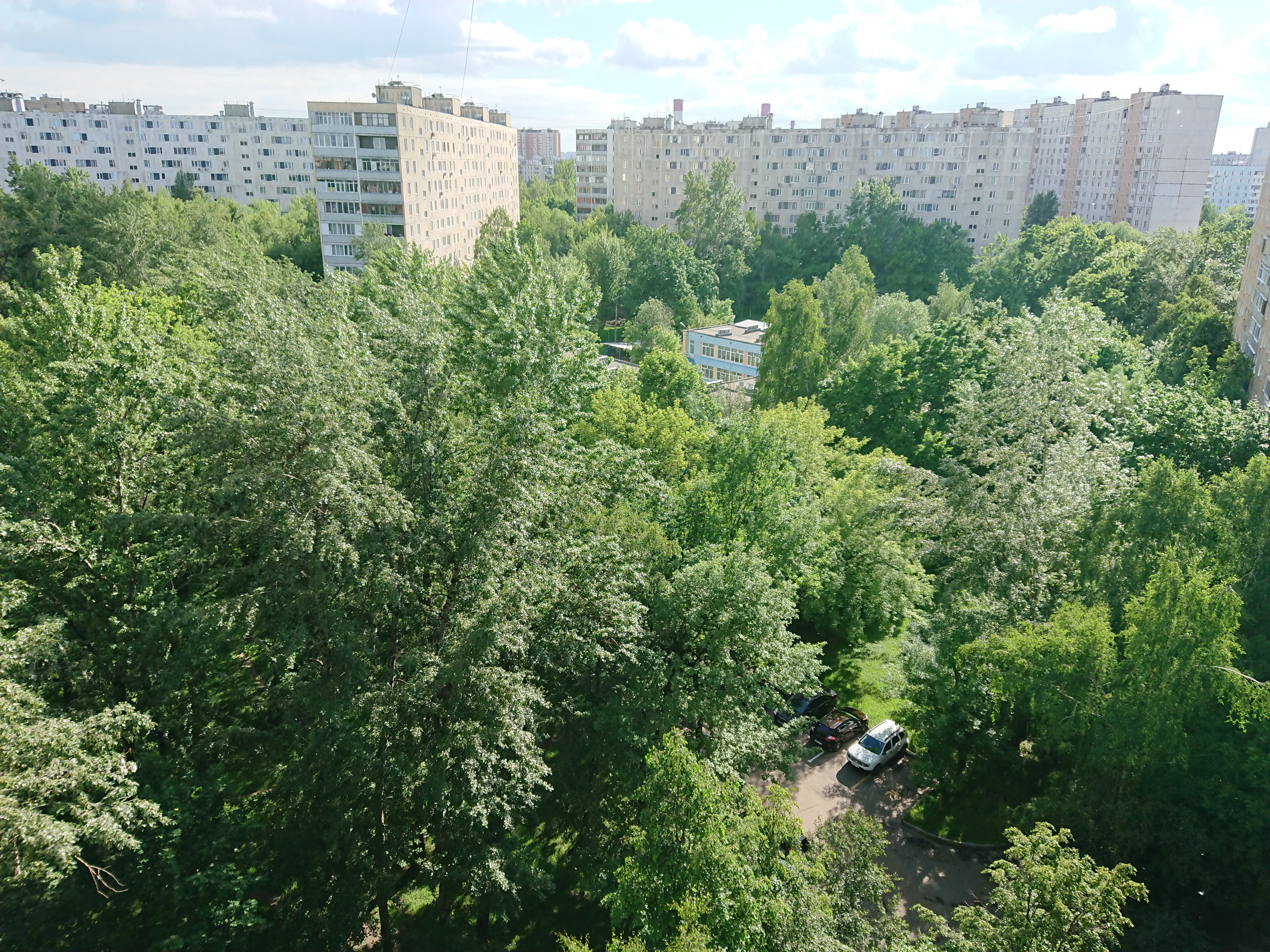Фронтальный модуль имеет сенсор Exmor RS с площадью 1/3,06″ и разрешением 13 Мп, а также 22-миллиметровый широкоугольный объектив с диафрагмой f/2,0 без собственной вспышки и автофокуса. Максимальная светочувствительность матрицы — ISO 6400, имеется такая же пятиосевая стабилизация SteadyShot с умным режимом Intelligent Active Mode, как и в основной камере. Качество съемки в целом неплохое: изображение светлое, резкое и детализированное. Однако, как видно из примеров, органично проэкспонировать одновременно темные и светлые участки матрице все же не удается, небо полностью высветляется даже при ровном дневном освещении.