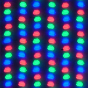 В данном экране используется матрица типа IPS. Микрофотографии демонстрируют типичную для IPS структуру субпикселей: