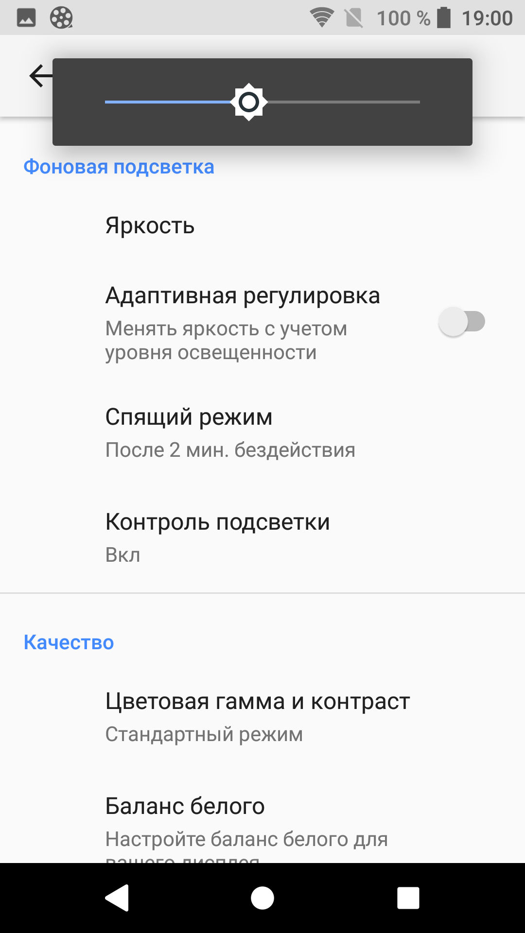 В этом смартфоне есть возможность подправить цветовой баланс регулировками интенсивностей трех основных цветов: