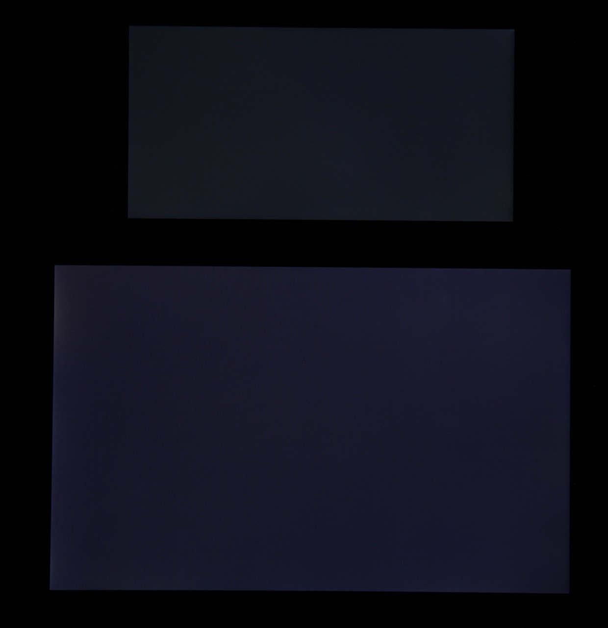 Яркость под углом у обоих экранов заметно уменьшилась, но в случае Sony Xperia XZ2 Compact падение яркости меньше. Черное поле при отклонении по диагонали высветляется слабо (но все равно чуть больше, чем у Nexus 7) и приобретает фиолетовый оттенок. Фотографии ниже это демонстрируют (яркость белых участков в перпендикулярном плоскости экранов направлении у экранов одинаковая!):