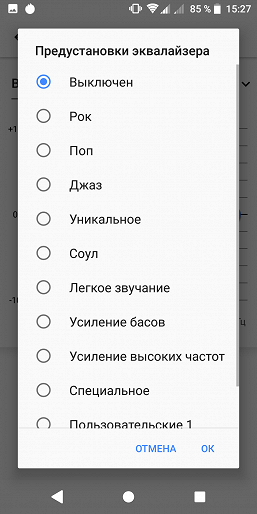 А вот в наушниках звук не хуже, чем у старшей модели. Набор настроек очень широк, но и по умолчанию со звуком все хорошо. Есть пятиполосный эквалайзер с пресетами. Поддерживаются профили Bluetooth 5.0 aptX/aptX HD audio/A2DPЕ. LDAC улучшает передачу данных по Bluetooth, обеспечивая качество практически на уровне Hi-Res Audio. Встроенного FM-радио нет, приложения диктофона в смартфонах Sony тоже не бывает.