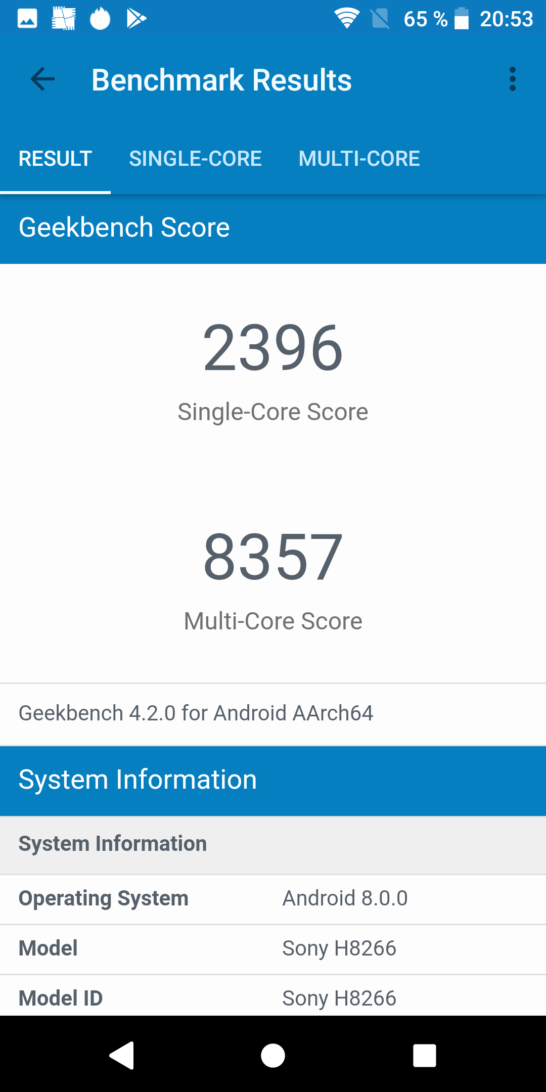 | GeekBench (v4.x) (больше — лучше) | 2396/8357 | 1906/6775 | 1415/5417 |