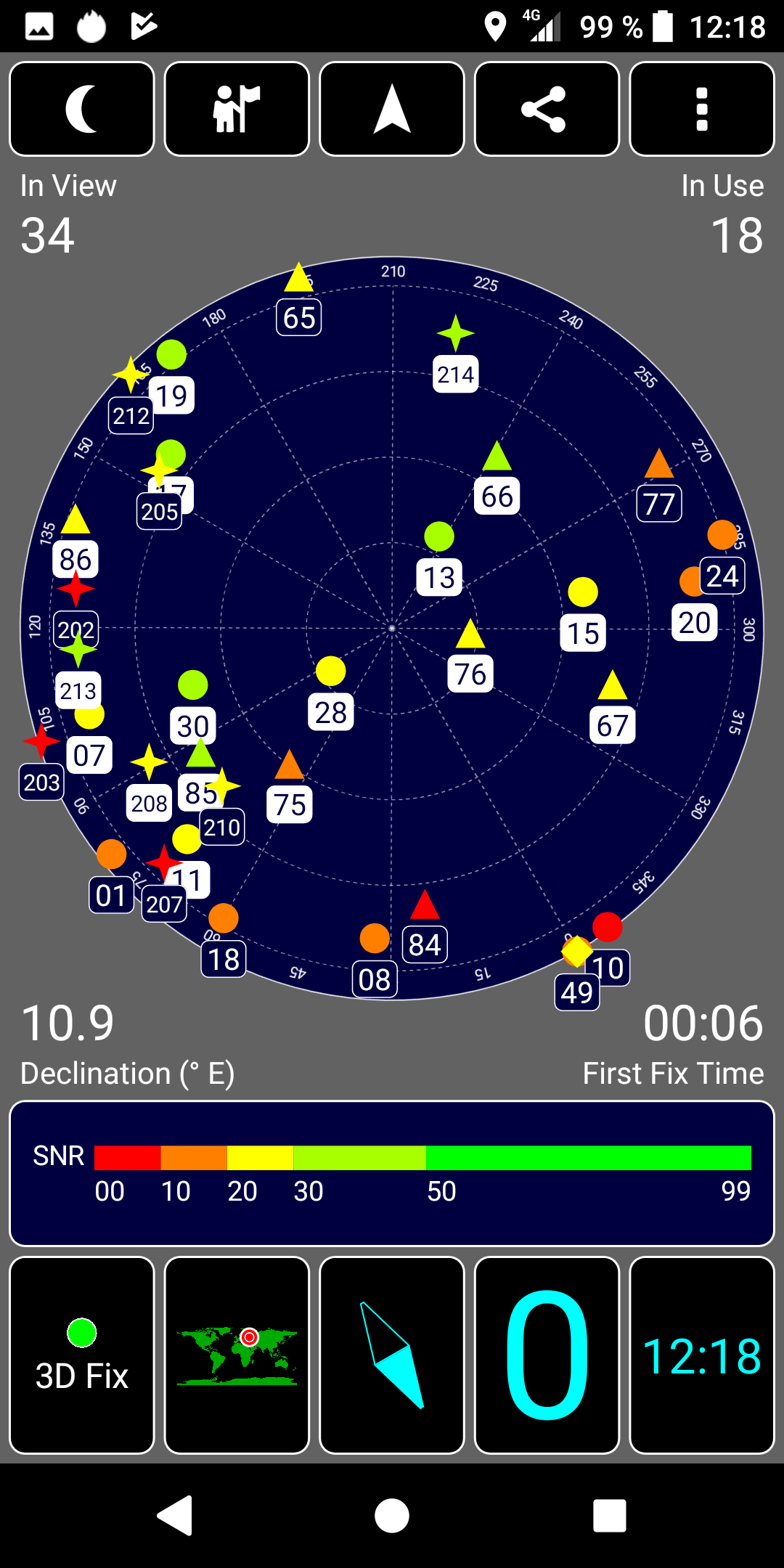 Навигационный модуль работает и с GPS (с A-GPS), и с отечественной Глонасс, и с китайской Beidou (также заявлена поддержка Galileo и QZSS). Первые спутники даже при холодном старте обнаруживаются быстро, в течение первых же секунд, точность позиционирования не вызывает претензий. Магнитный компас, необходимый для навигационных программ, также на месте.