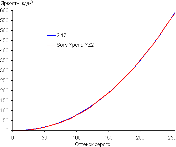 При ручном управлении яркостью и при выводе белого поля во весь экран ее максимальное значение составило порядка 600 кд/м², а минимальное — 6 кд/м². Максимальное значение очень высокое, и, учитывая отличные антибликовые свойства, при ярком дневном свете и даже на прямом солнце изображение на экране должно быть хорошо различимым. В полной темноте яркость можно понизить до комфортного уровня. Работает автоматическая регулировка яркости по датчику освещенности (он расположен левее прорези фронтального громкоговорителя). В автоматическом режиме при изменении внешних условий освещенности яркость экрана как повышается, так и понижается. Работа этой функции зависит от положения регулировки яркости, им пользователь может попытаться выставить желаемый уровень яркости в текущих условиях. Если ничего не менять, то в полной темноте функция автояркости уменьшает яркость до 6 кд/м² (темновато), в условиях освещенного искусственным светом офиса (примерно 550 лк) устанавливает на 160 кд/м² (нормально), в очень ярком окружении (соответствует освещению ясным днем вне помещения, но без прямого солнечного света — 20000 лк или немного больше) повышает до 600 кд/м² (до максимума, так и нужно). В темноте мы немного передвинули ползунок регулировки вправо и для трех указанных выше условий получили 12, 165 и 600 кд/м², такое сочетание нас устроило. Получается, что функция автоподстройки яркости работает адекватно и позволяет пользователю настраивать свою работу под индивидуальные требования. Только на очень низком уровне яркости появляется значимая модуляции подсветки, но ее частота высокая, порядка 2,3 кГц, поэтому видимое мерцание экрана отсутствует и вряд ли может быть выявлено в тесте на наличие стробоскопического эффекта.
