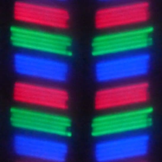 В данном экране используется матрица типа IPS. Микрофотографии демонстрируют типичную для IPS структуру субпикселей: