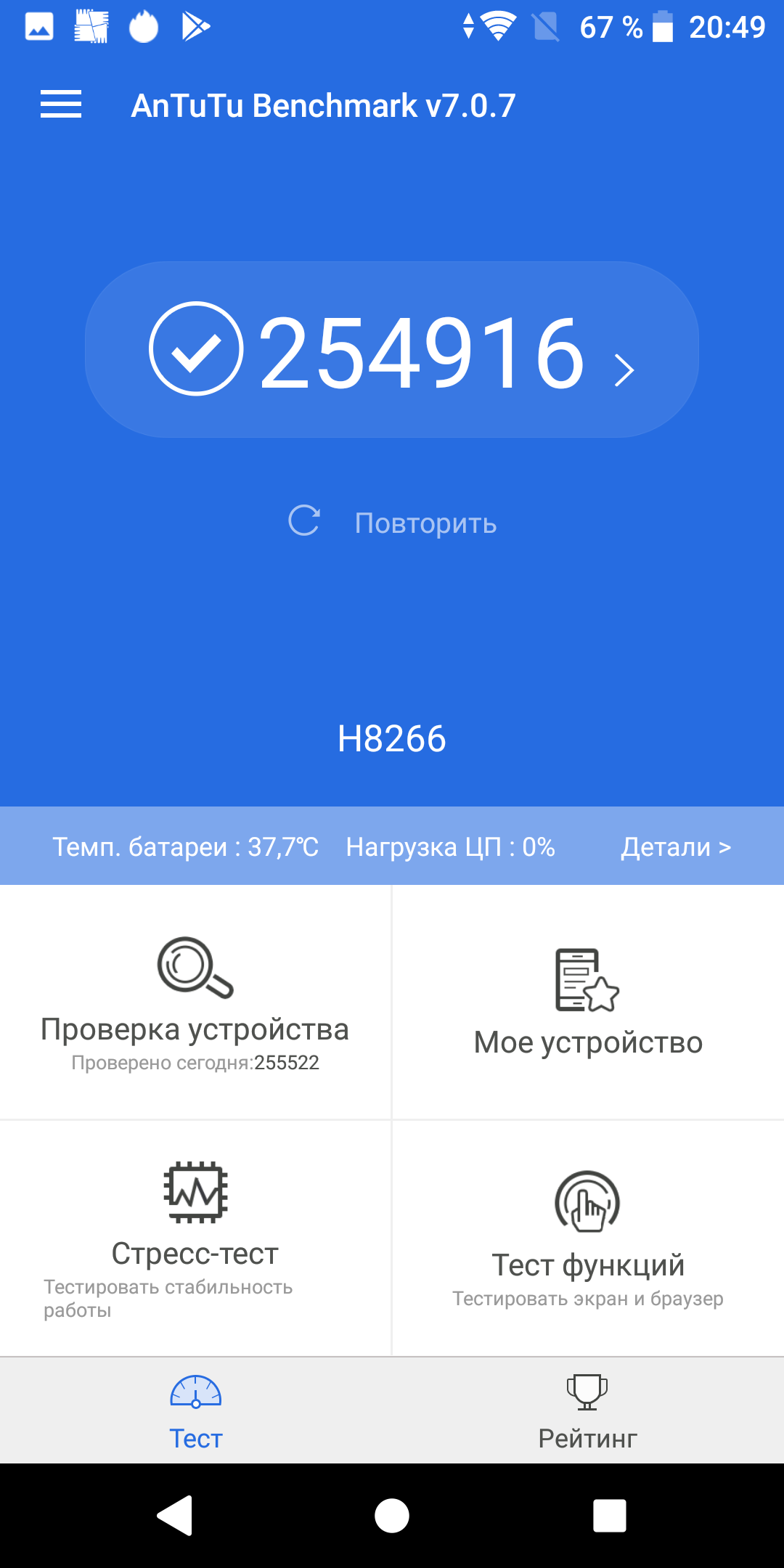 | AnTuTu (v7.x) (больше — лучше) | 254916 | 209585 | 143077 |