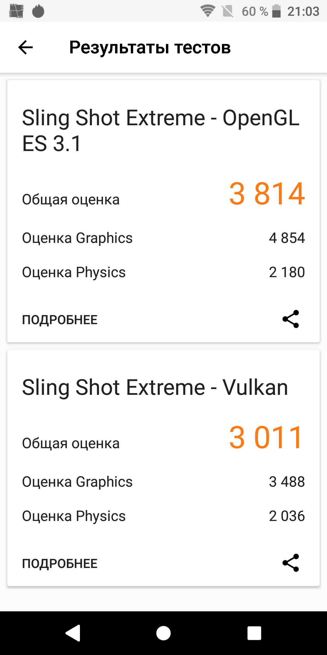 | 3DMark Ice Storm Sling Shot ES 3.1 (больше — лучше) | 3814 | 2963 | 1826 |