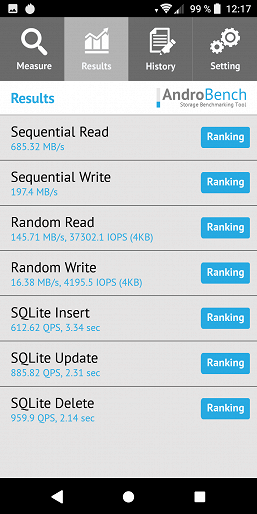 Результаты теста AndroBench на скорость работы с памятью: