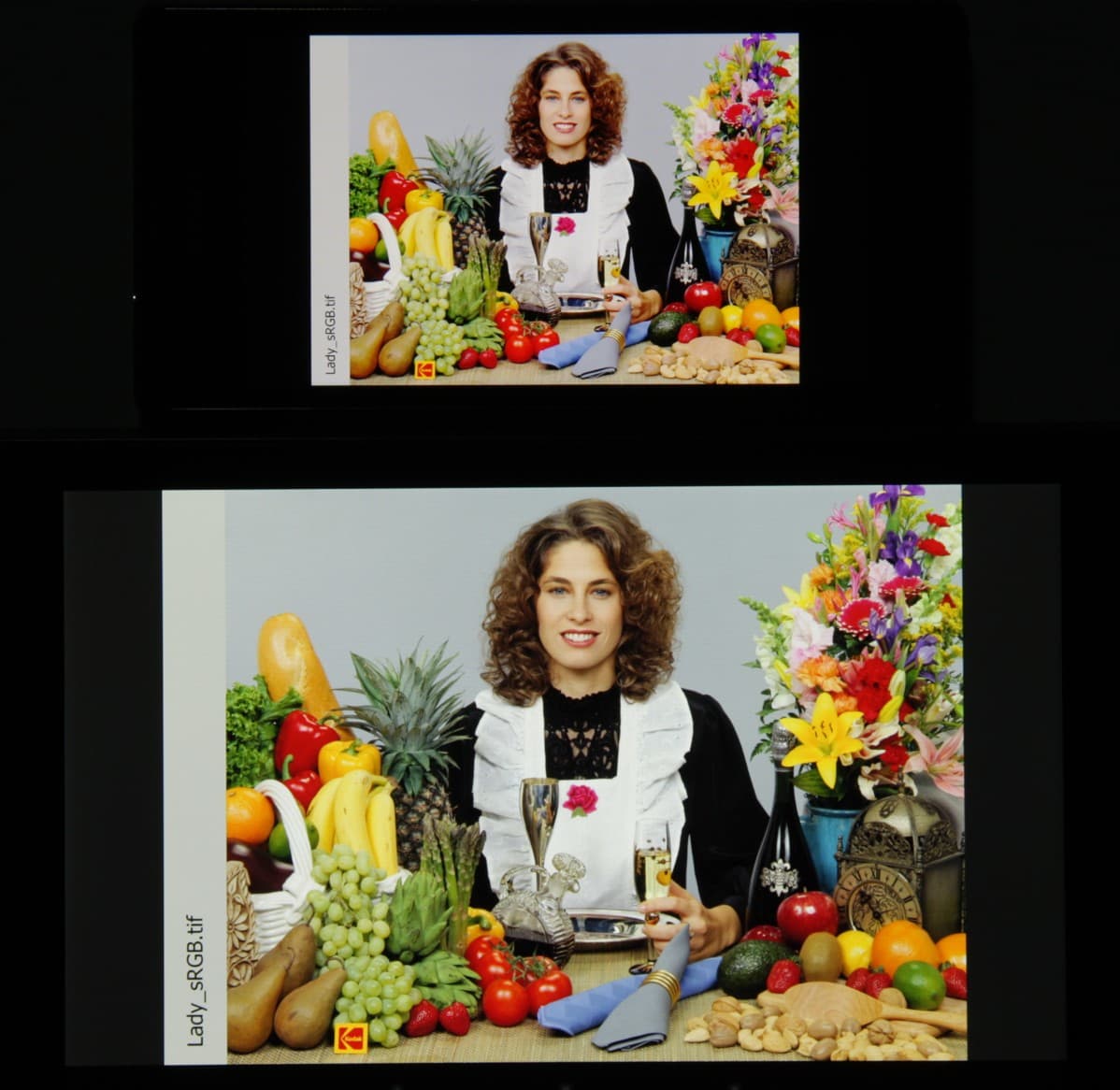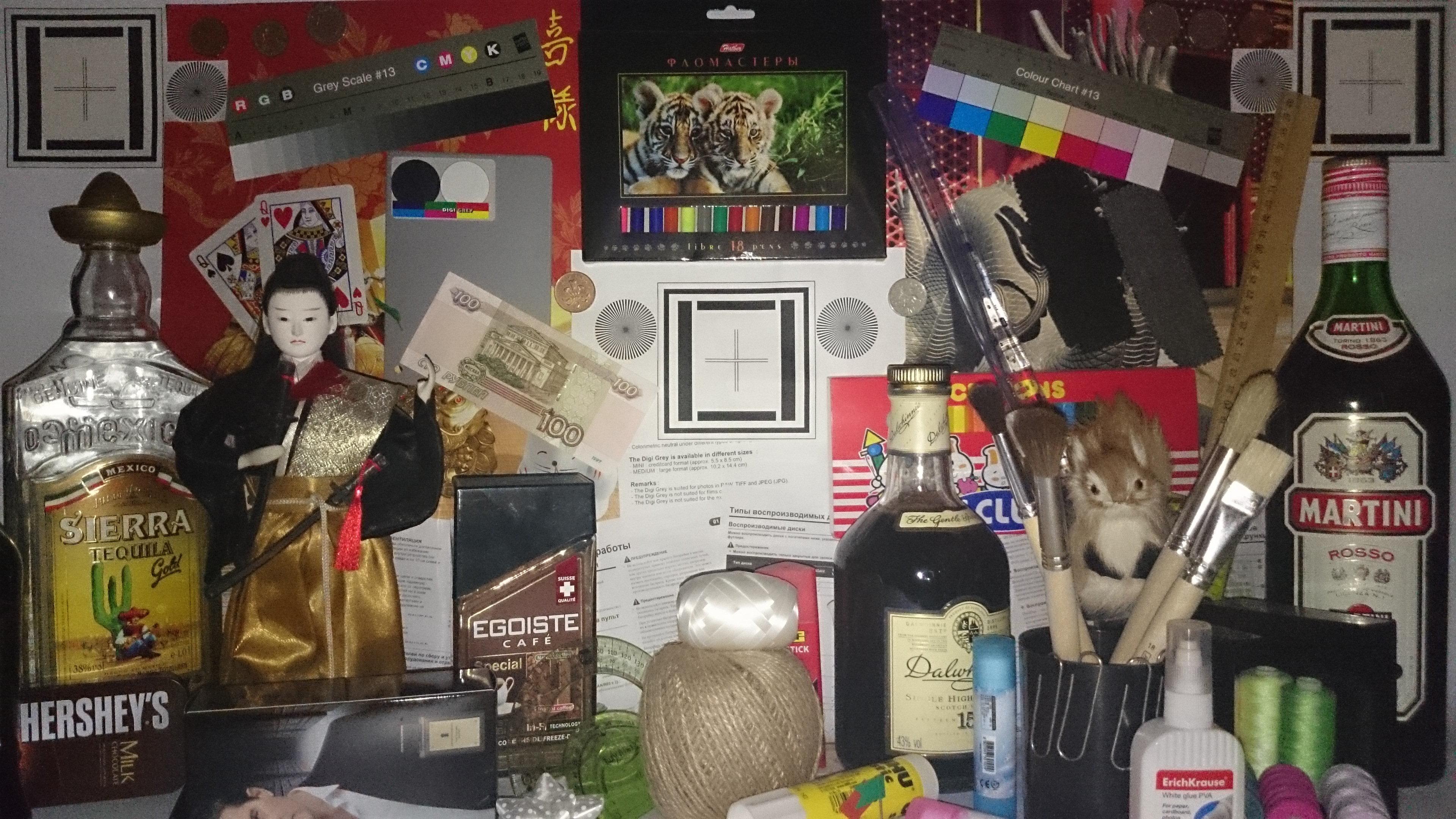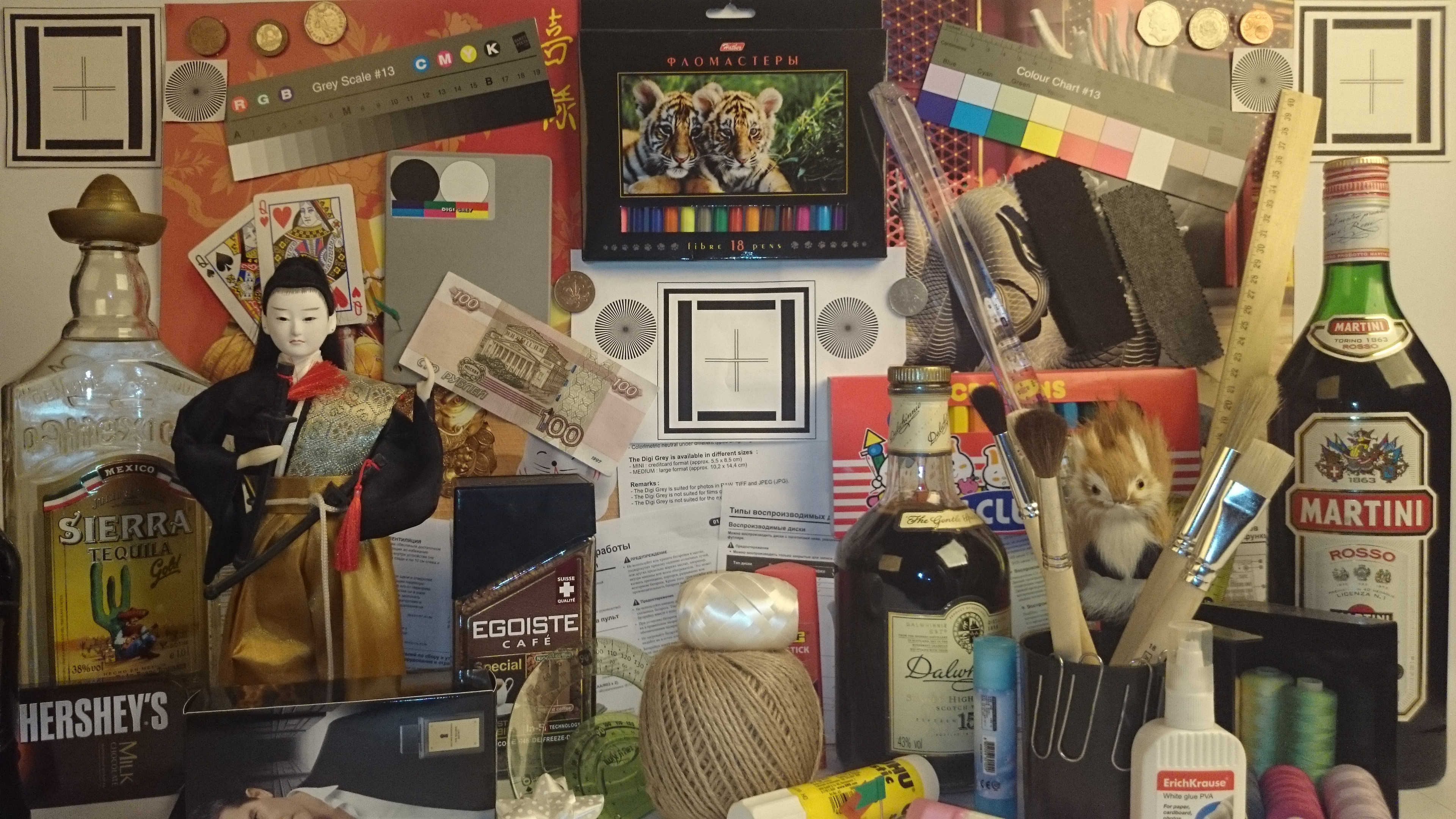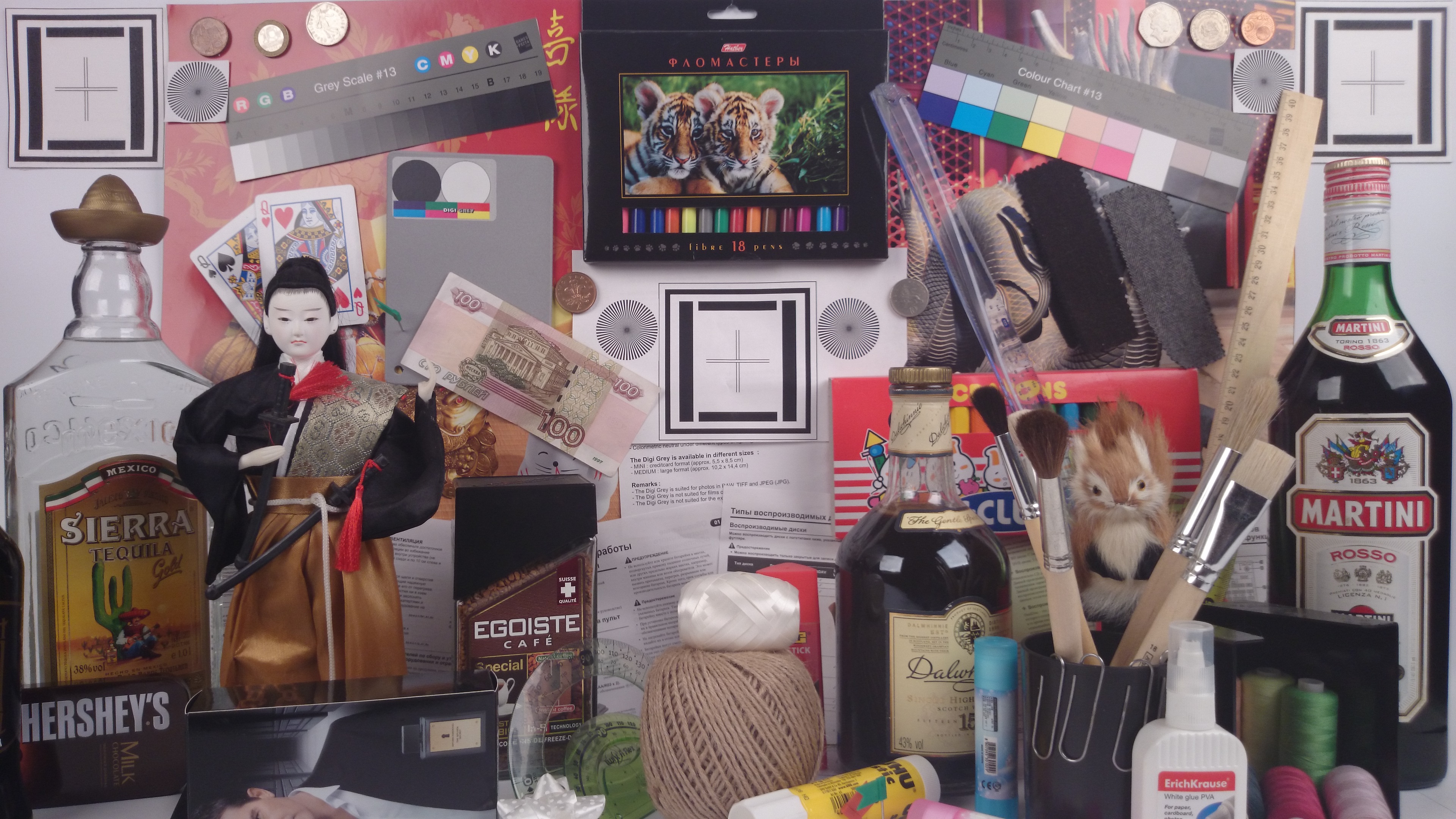 Видно, что цветопередача немного различается (при фотографировании цветовой баланс принудительно установлен на 6500 К), но это единственный обоснованный вывод, который можно сделать по фотографии. И белое поле: