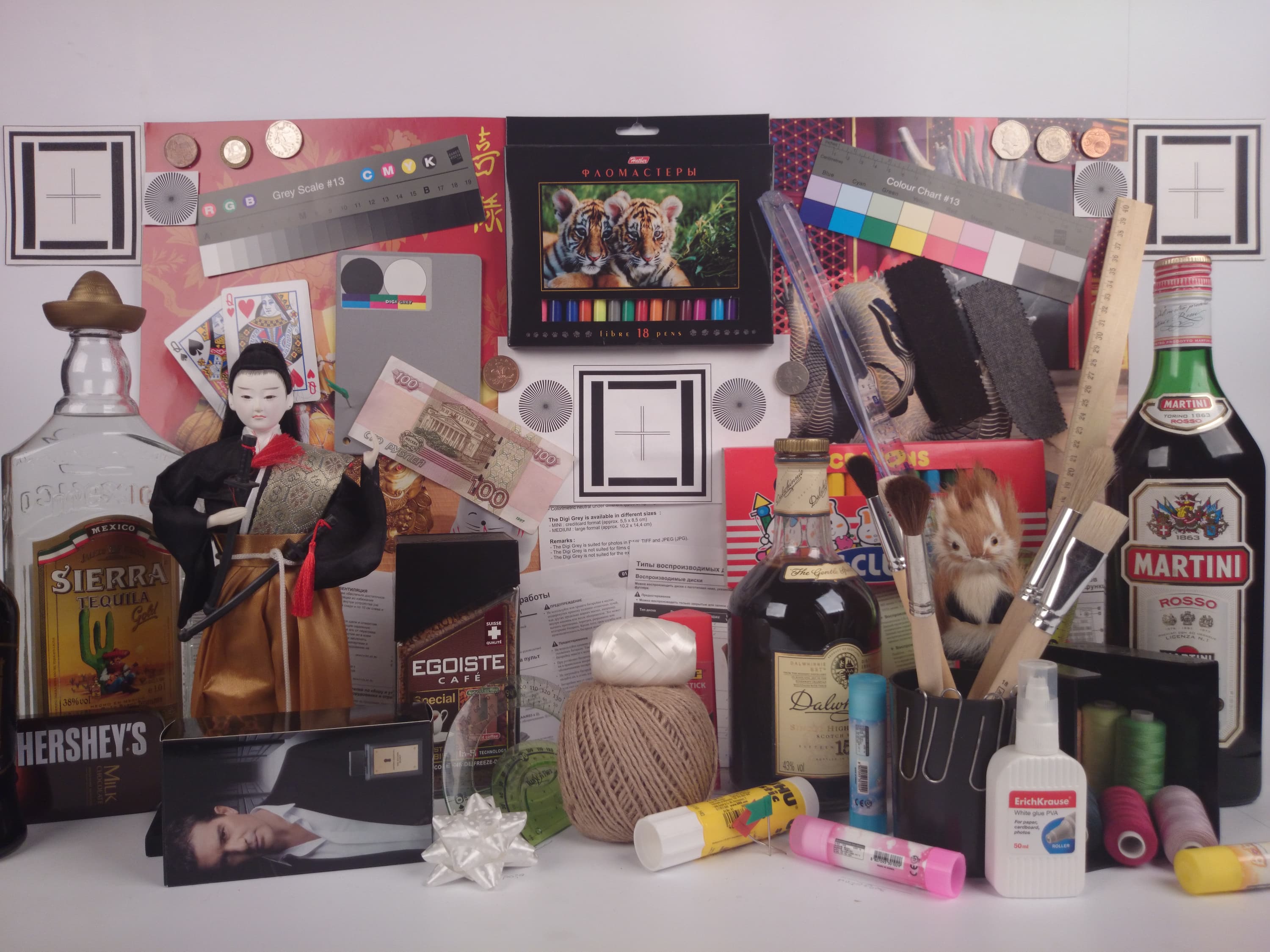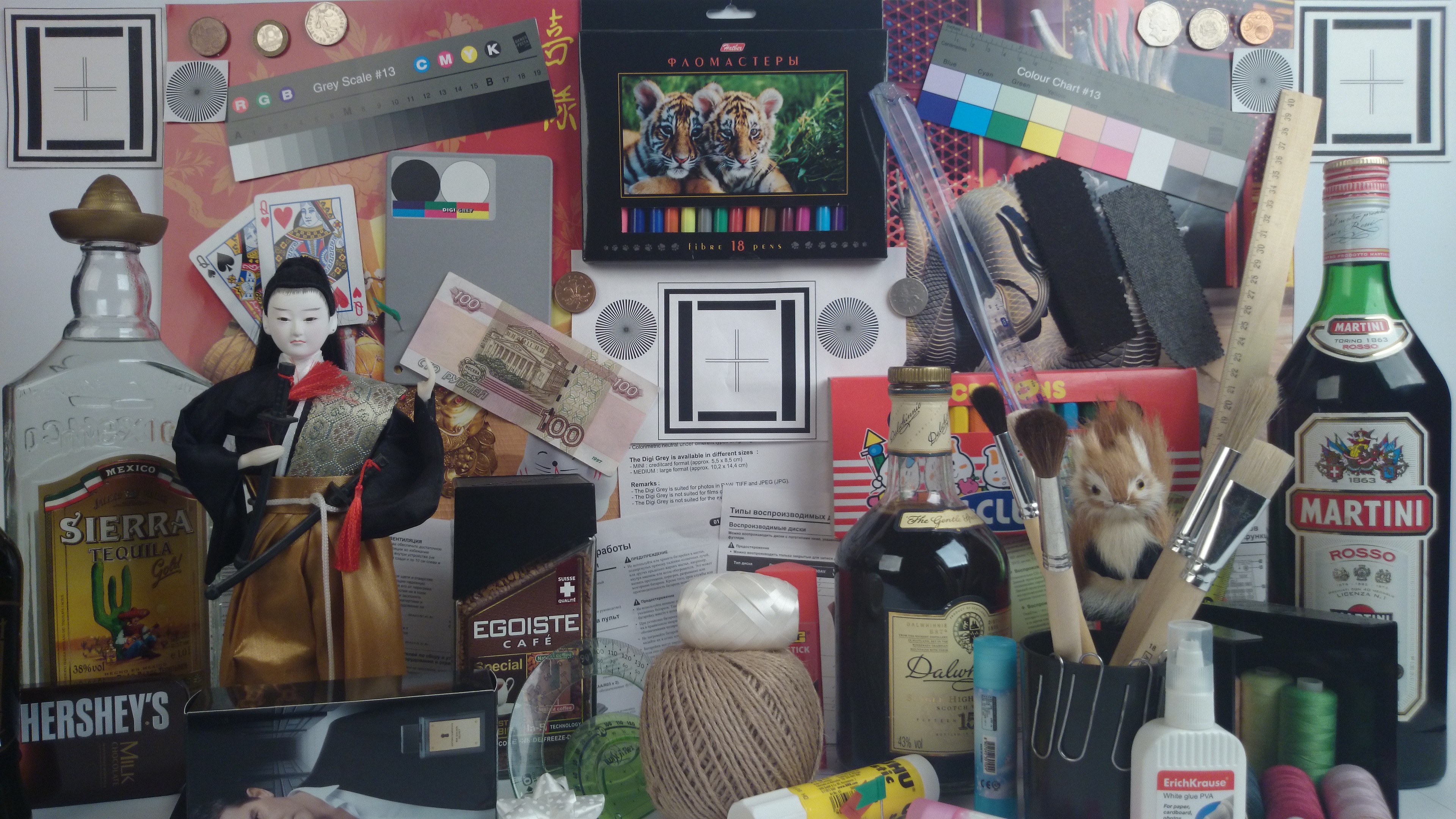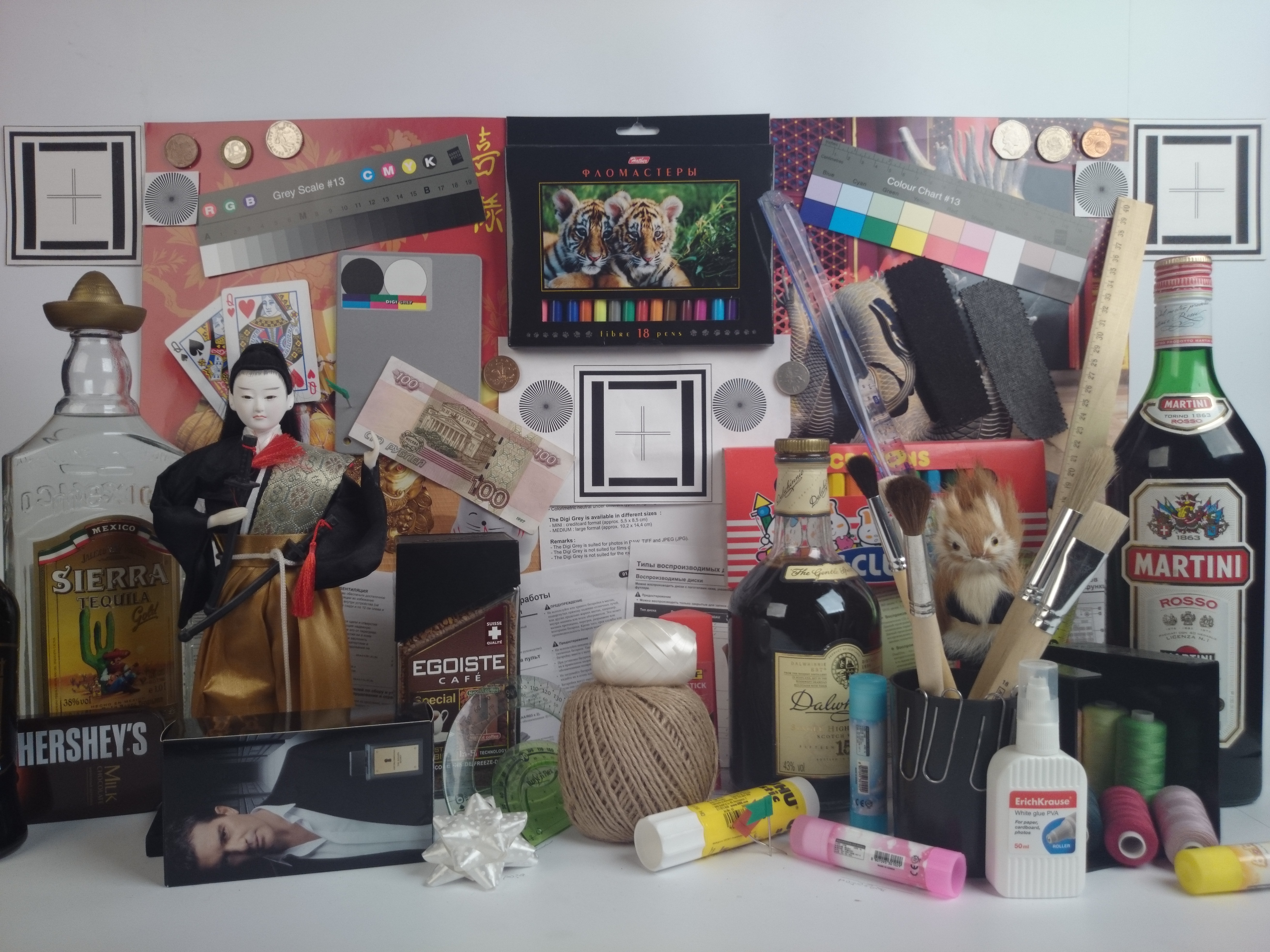Видно, что цветопередача немного различается (при фотографировании цветовой баланс принудительно установлен на 6500 К), но это единственный обоснованный вывод, который можно сделать по фотографии. И белое поле: