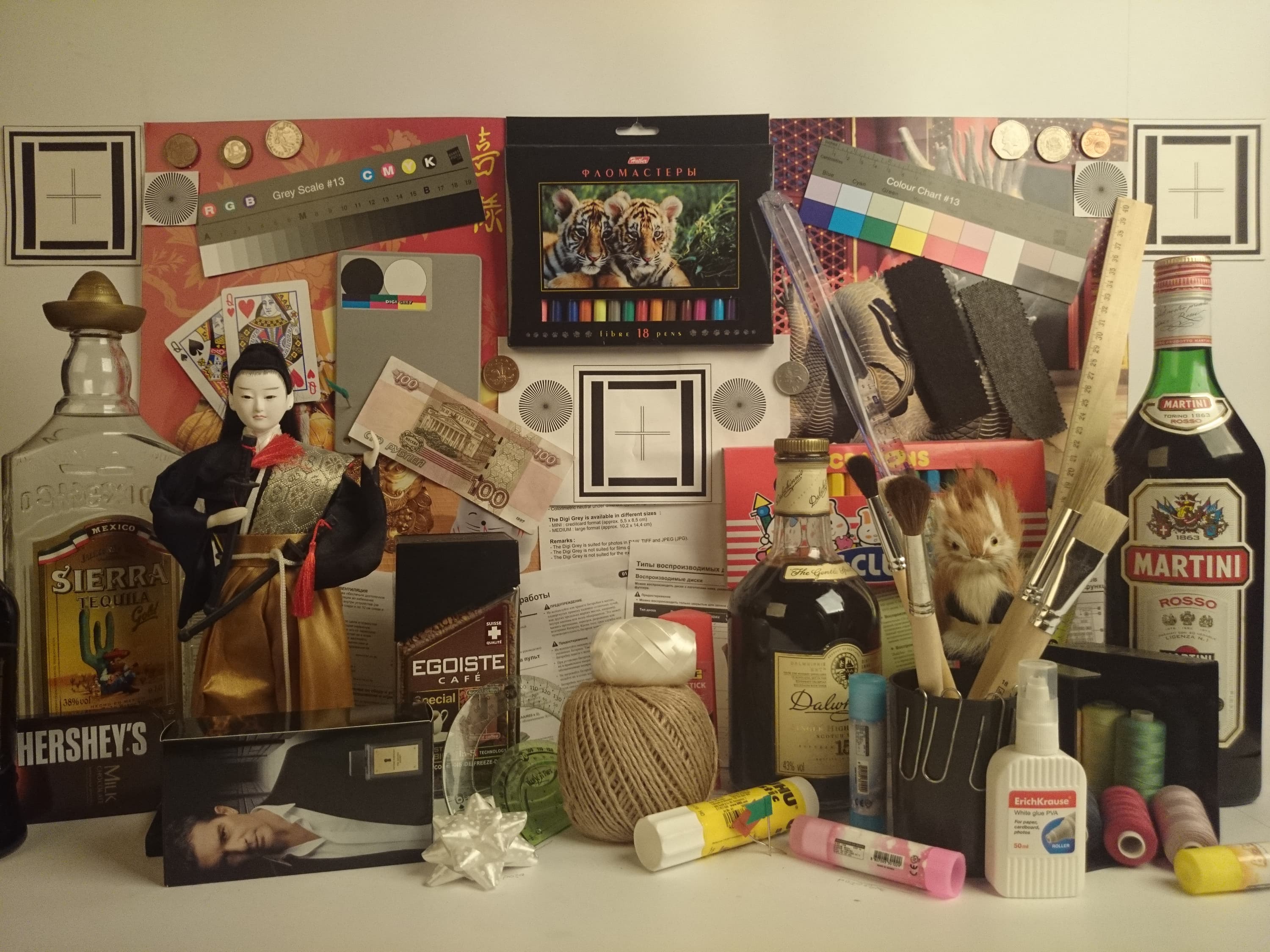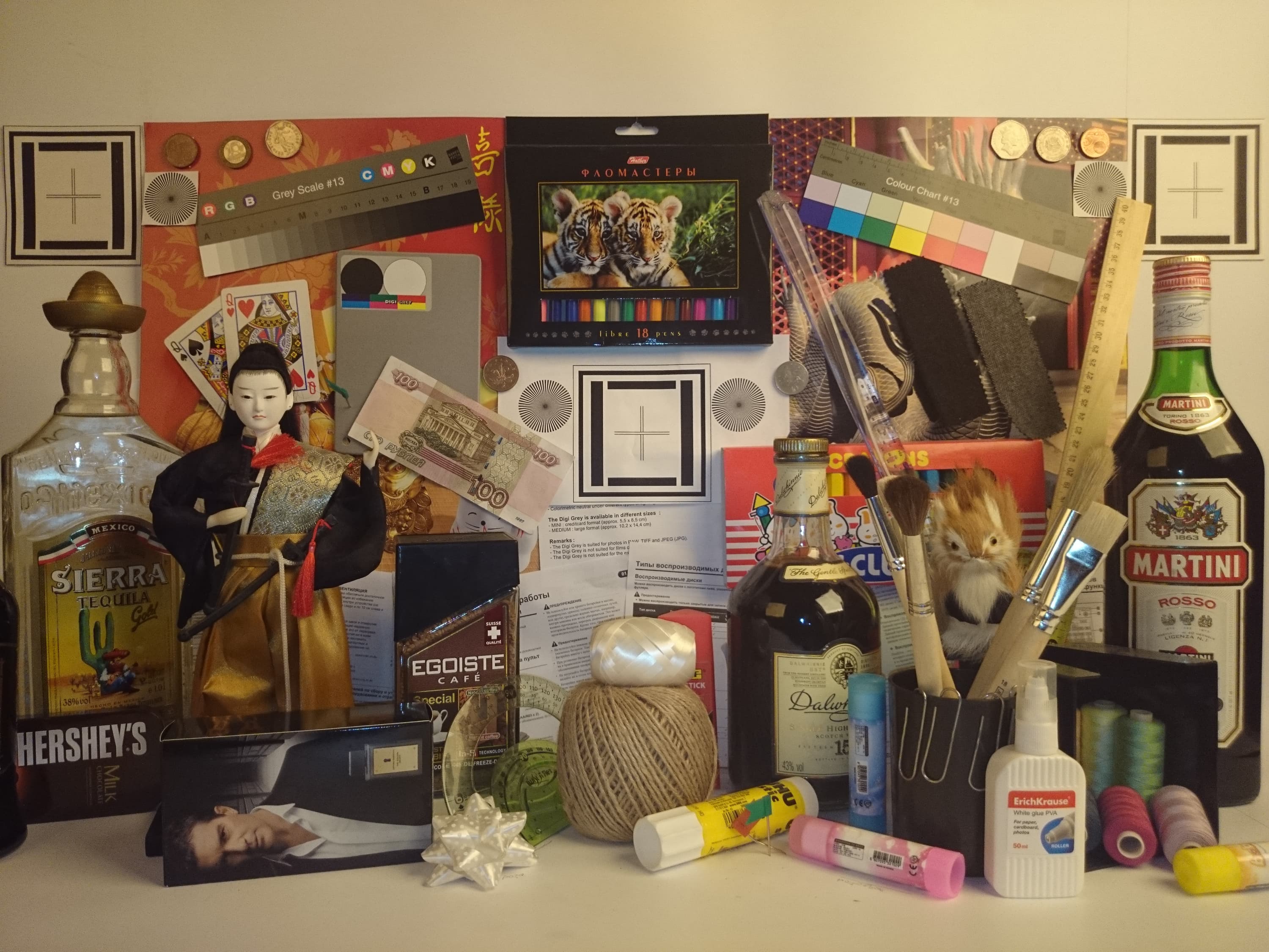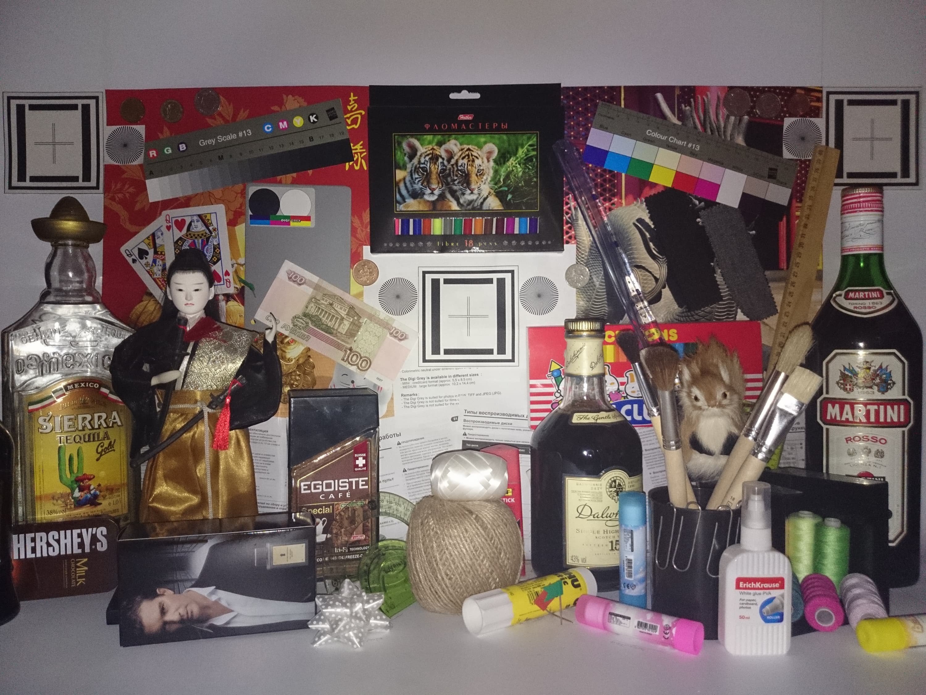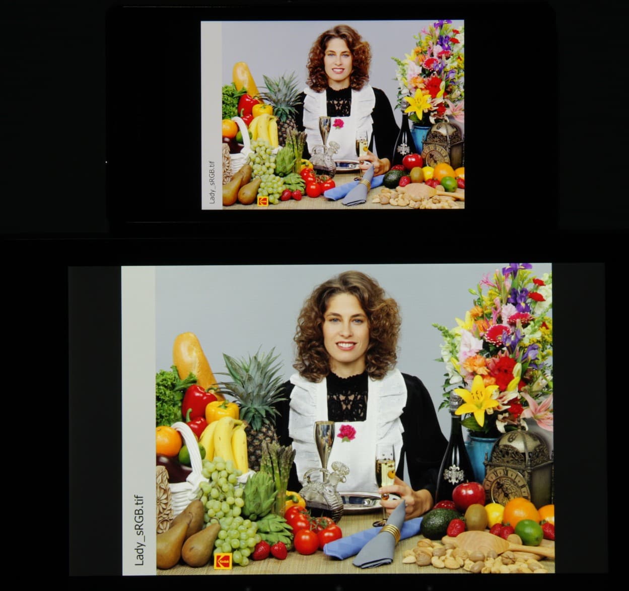 Видно, что цветопередача немного различается (при фотографировании цветовой баланс принудительно установлен на 6500 К), но это единственный обоснованный вывод, который можно сделать по фотографии. И белое поле: