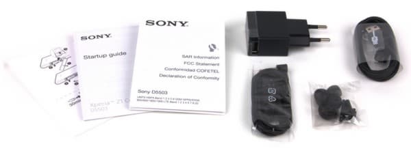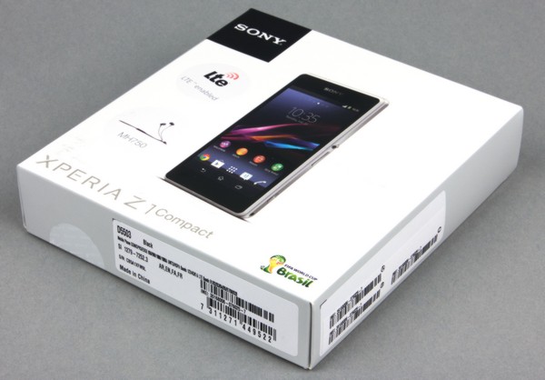 Смартфон Sony Xperia Z1 Compact поставляется в продажу в достаточно простой по виду, ставшей уже классической для последних смартфонов Sony плоской и квадратной упаковке из тонкого нелакированного картона с несколькими отделениями внутри. Комплектация стандартна: мощное зарядное устройство (1,5 А), соединительный кабель, неплохие наушники с гелевыми насадками вакуумного типа (МН750) и толстая пачка бумажной документации. Кстати, данный смартфон, как и другие топовые модели Sony, поддерживает так называемую «быструю» зарядку, когда буквально за полчаса, проведенных у розетки, телефон заряжается настолько, что способен после этого продержаться целый час в режиме разговора.